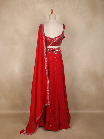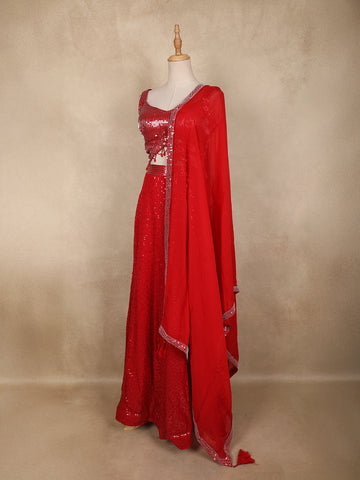 Red Heavy Sequins Embellished Design Georgette Lehenga with Dupatta