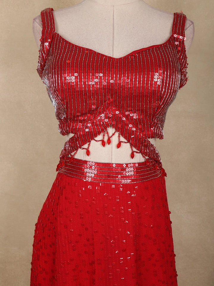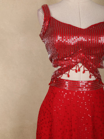 Shine brighter than ever with this show-stopping Red Heavy Sequins Embellished Georgette Lehenga Set, crafted for celebrations that call for glamour, confidence, and unforgettable style. The vibrant red hue combined with intricate all-over sequin work creates a dazzling, light-catching effect—perfect for evening functions and high-energy events.