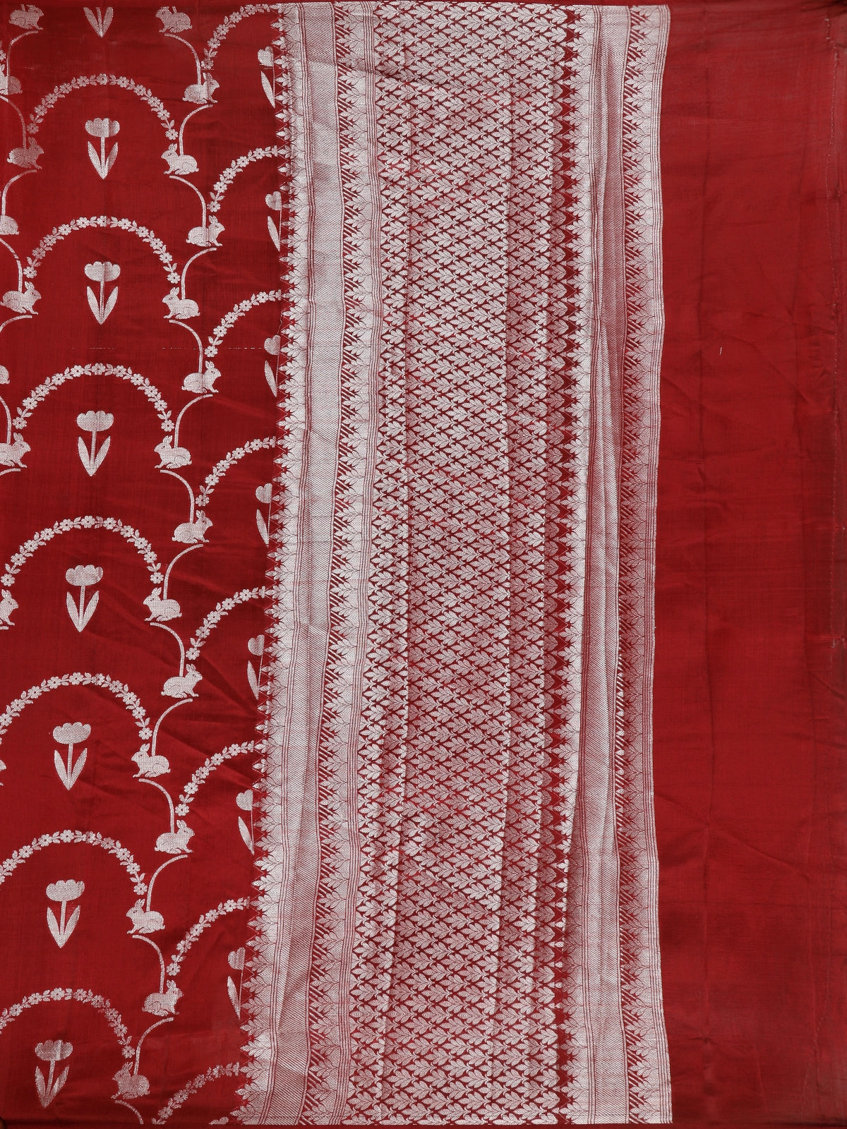 Red Rabbit and Floral Design Semi Banarasi Saree