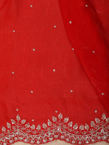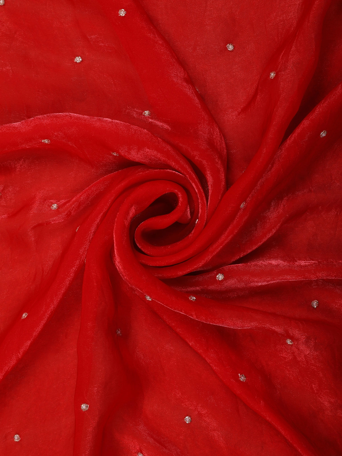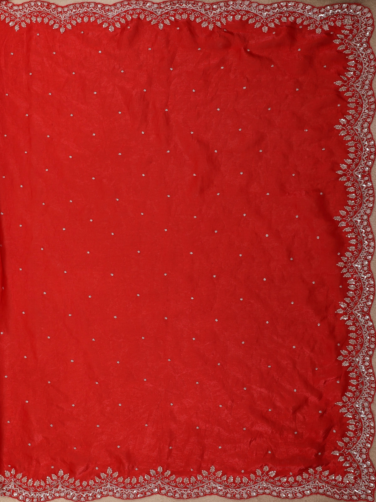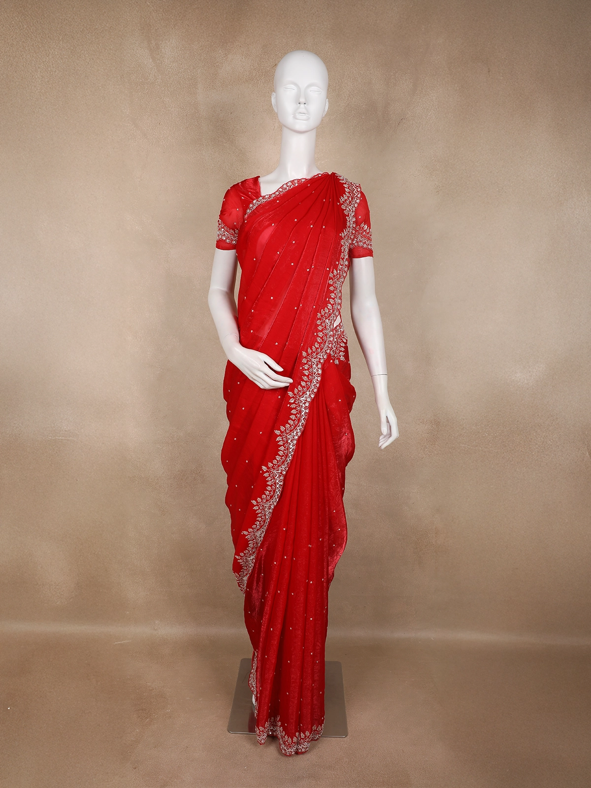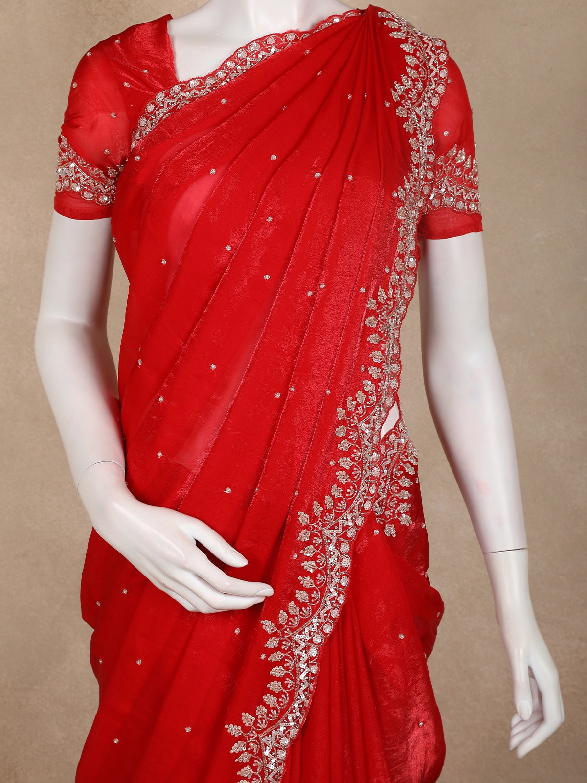 Red Sequins and Beads Embroidered Design Space Silk Party Wear Saree