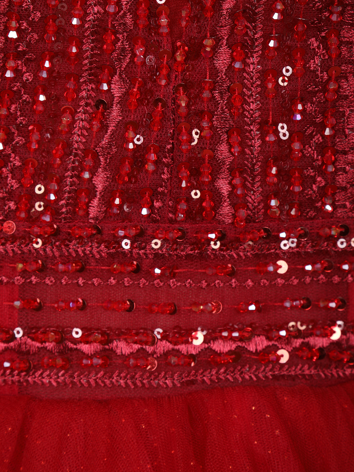 Make every moment extraordinary with this captivating Red Sequins Embellished Net Ball Gown, designed to radiate glamour and charm wherever you go. The fully embellished bodice sparkles beautifully with its intricate sequin detailing, creating a luxurious texture that catches the light effortlessly.
