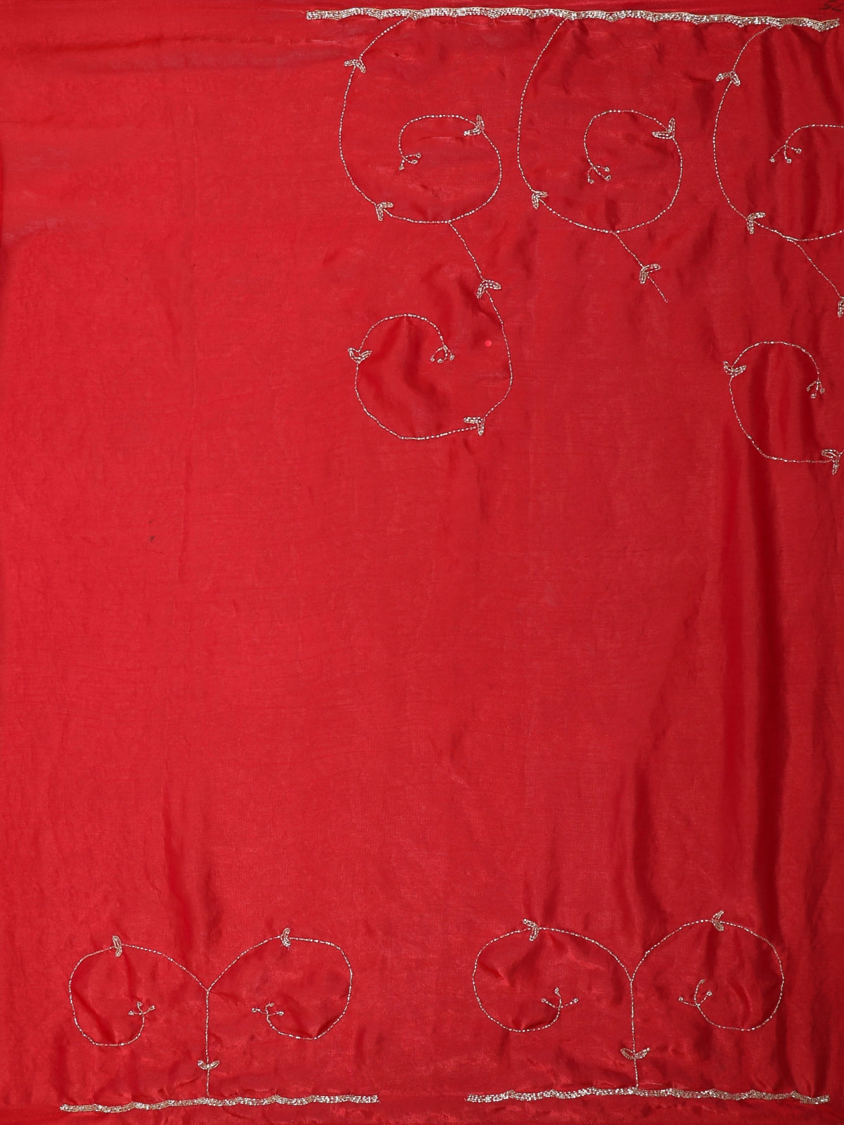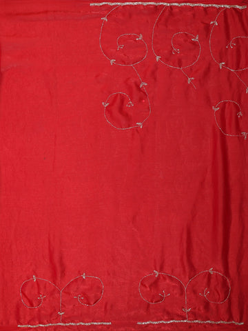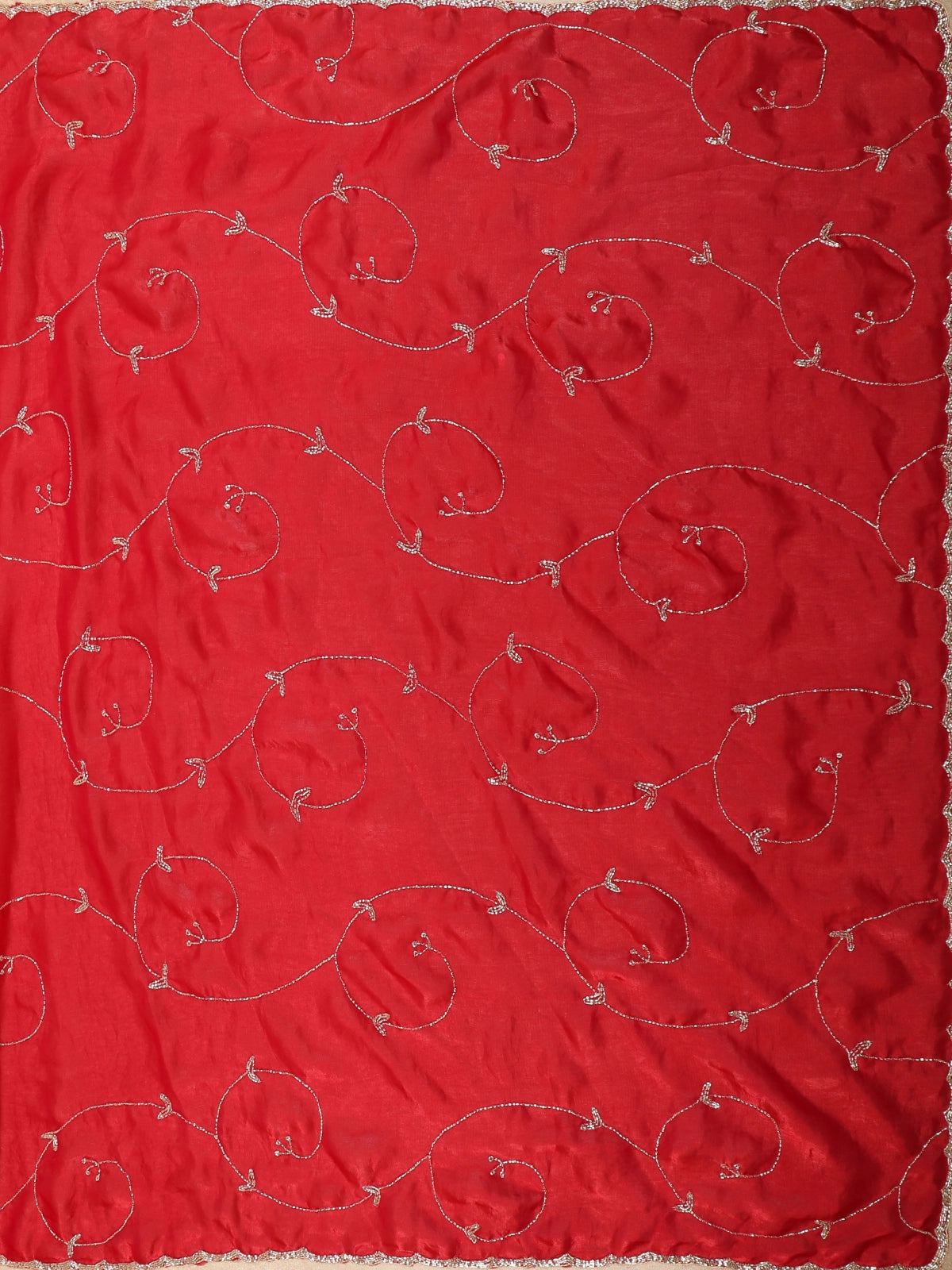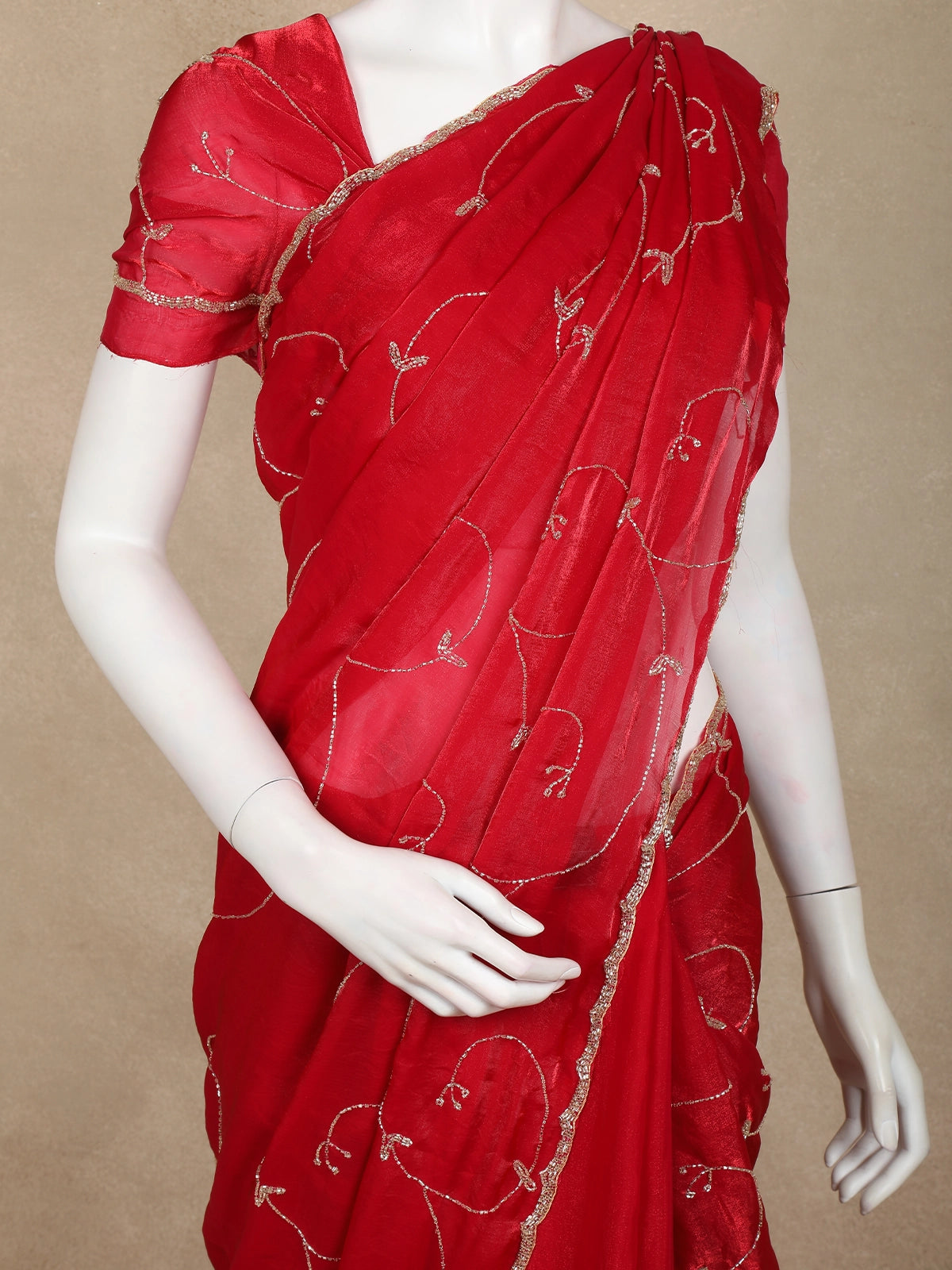 Red Sequins Embroidered Tissue Organza Saree with Designer Border