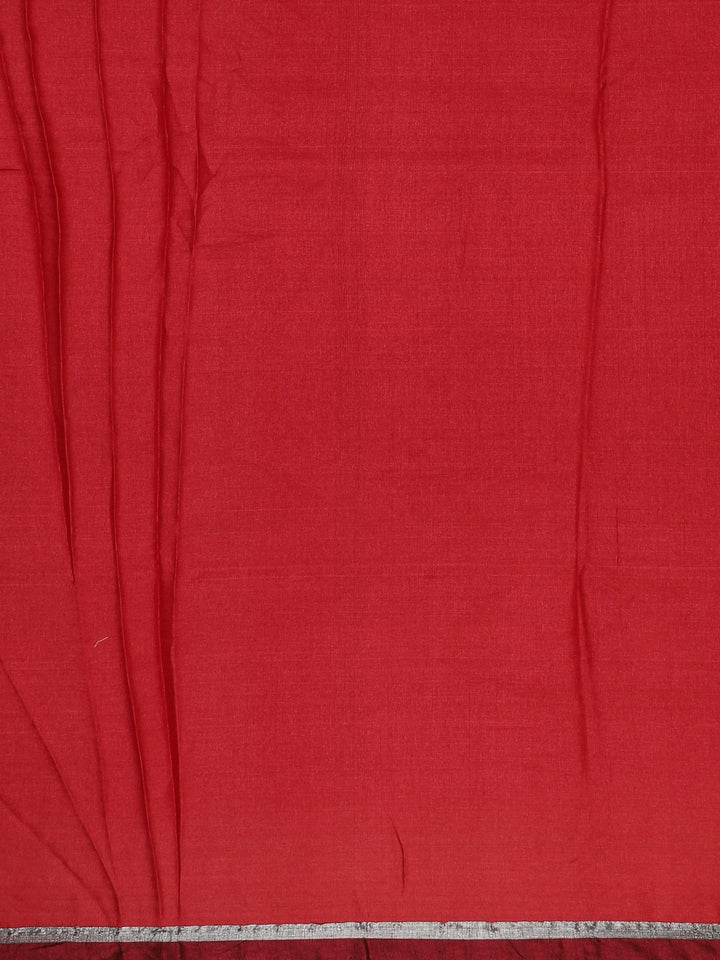 Red Solid Design Tussar Saree with Contrast Grey Zari Border