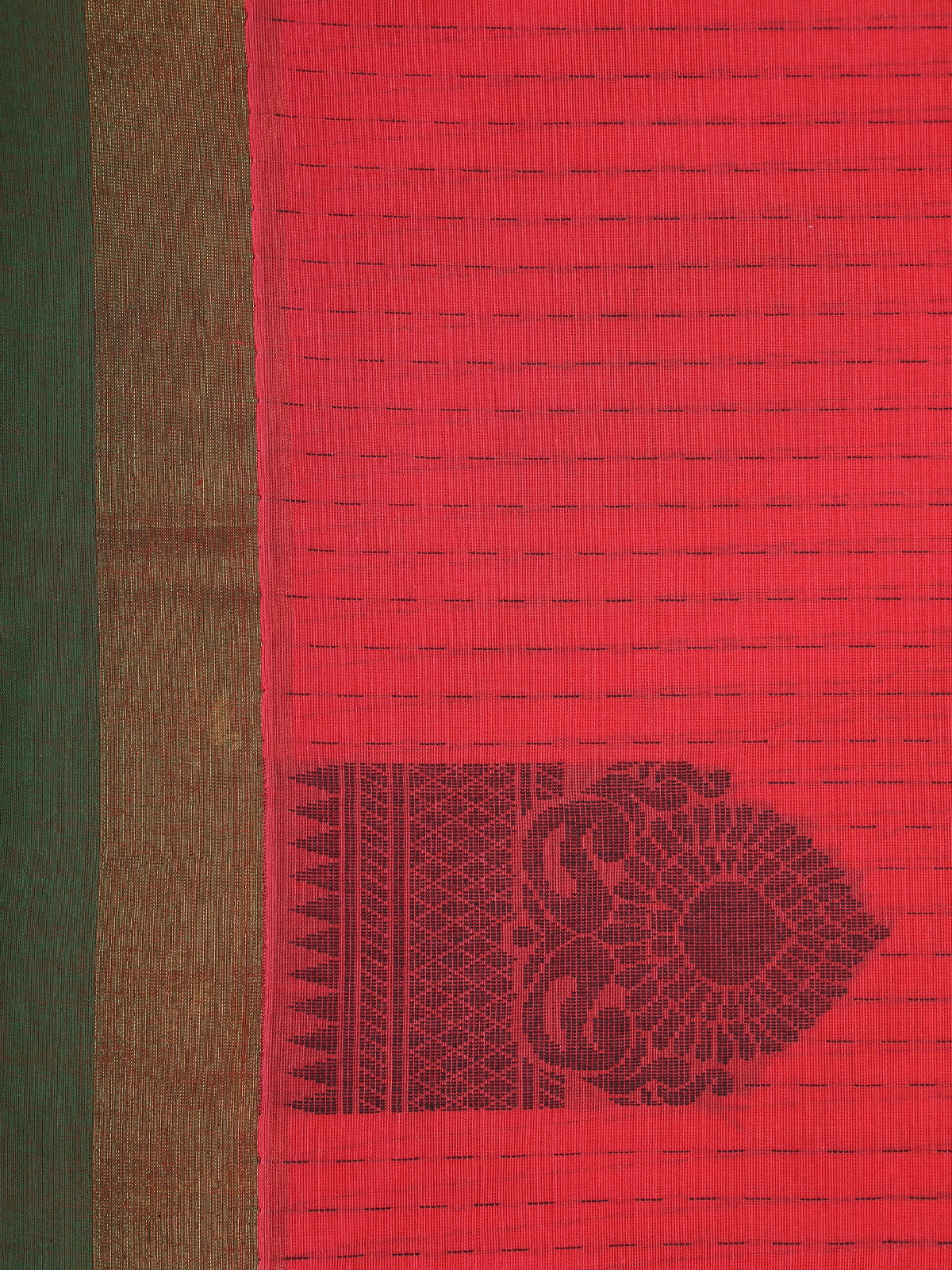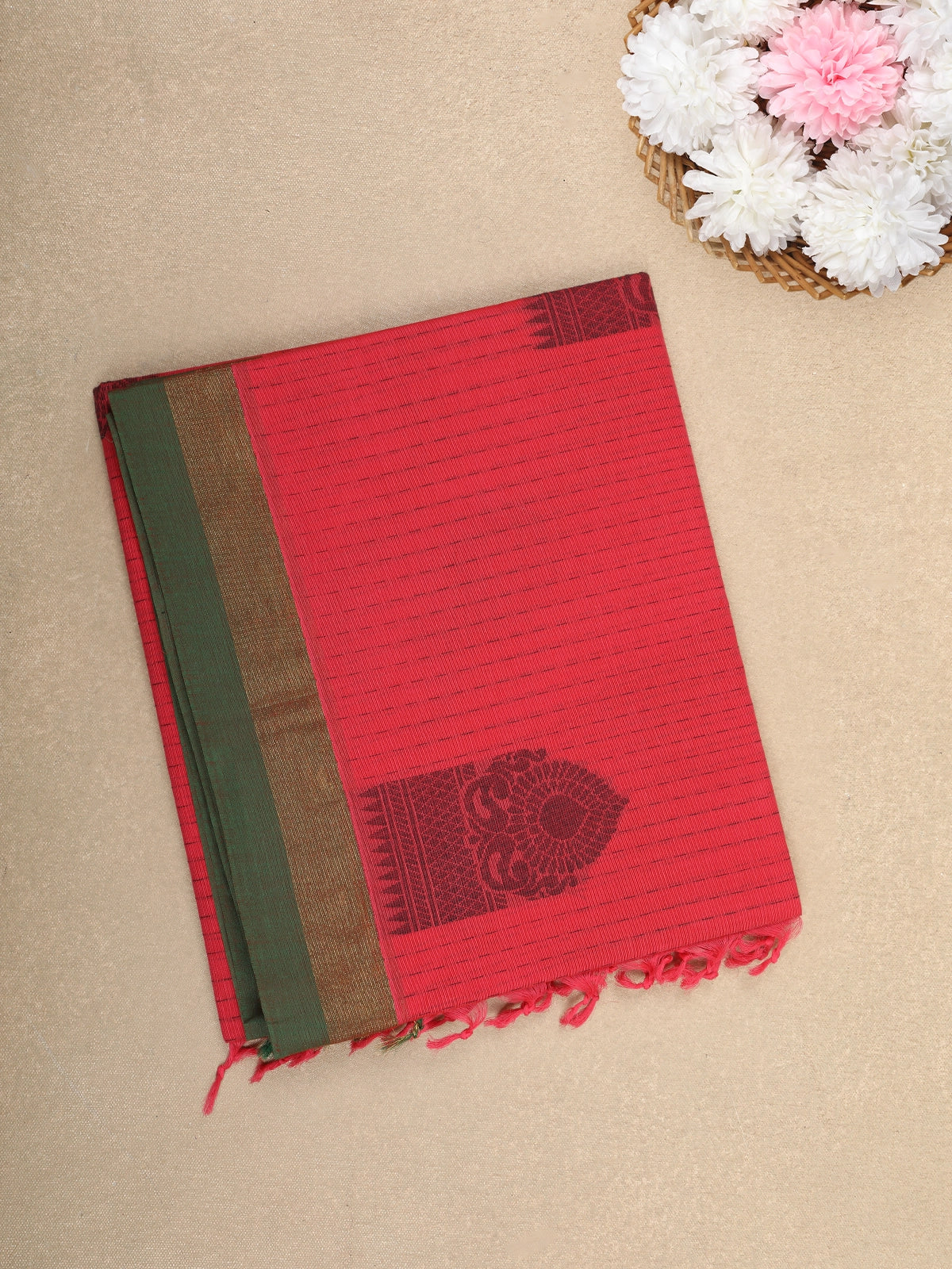 Red Stripes Design Cotton Saree with Contrast Green Zari Border