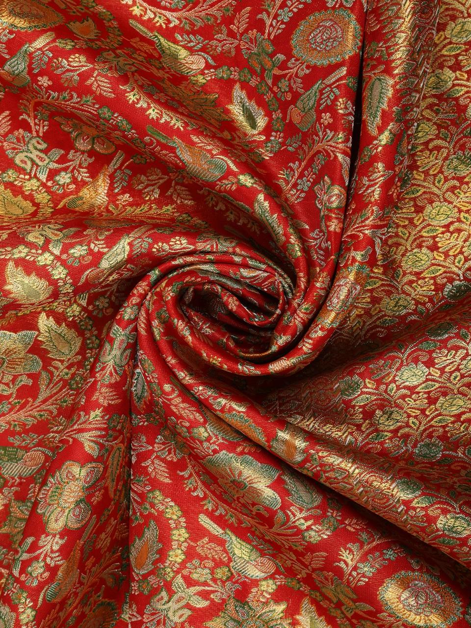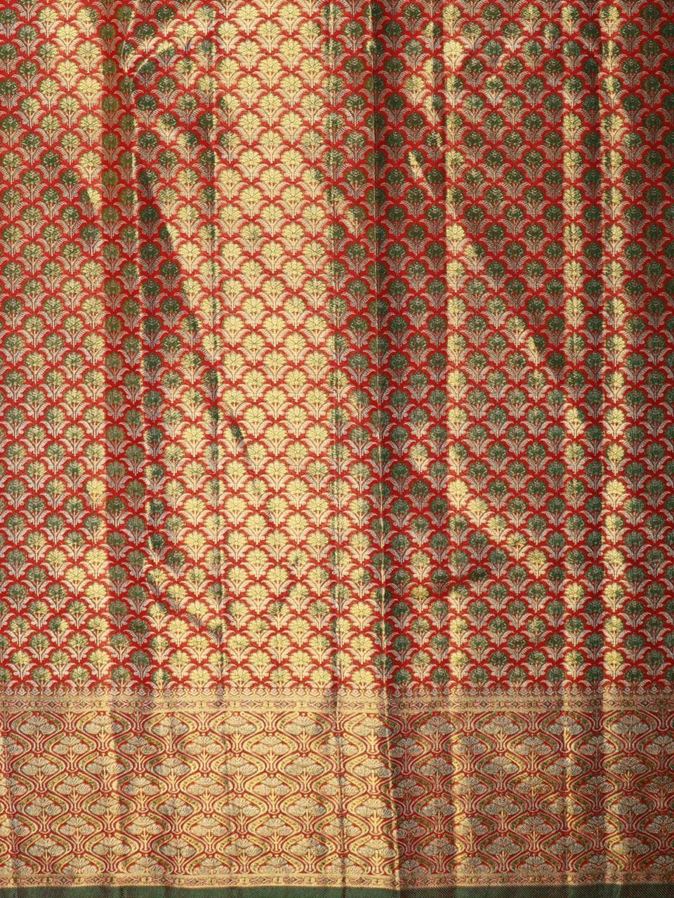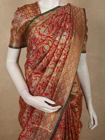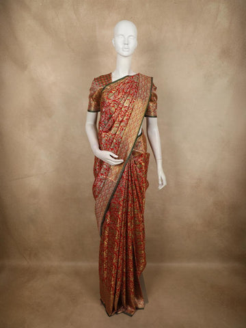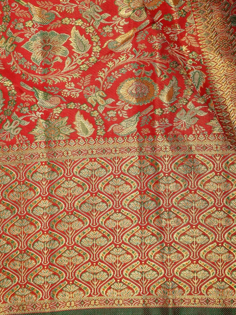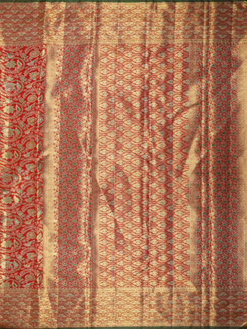 Regal Vermilion Red Floral Gold Zari Woven Design Pure Kanchipuram Silk Saree with Ornamental Brocade Border