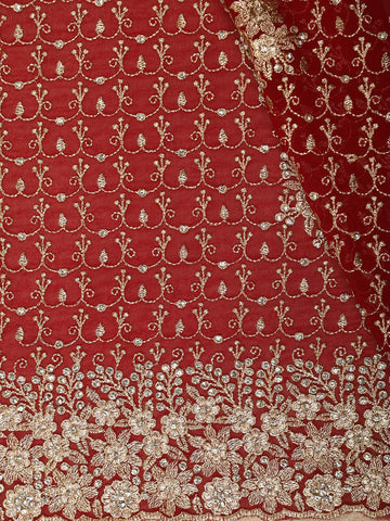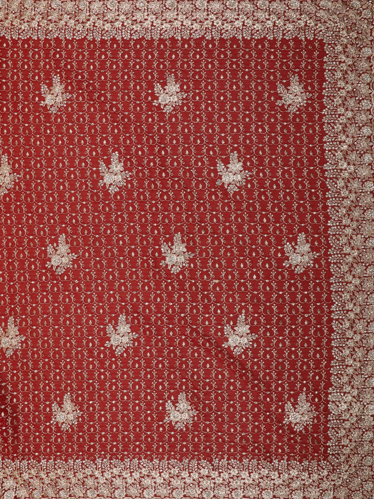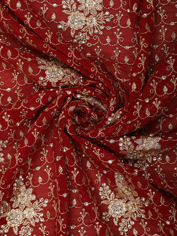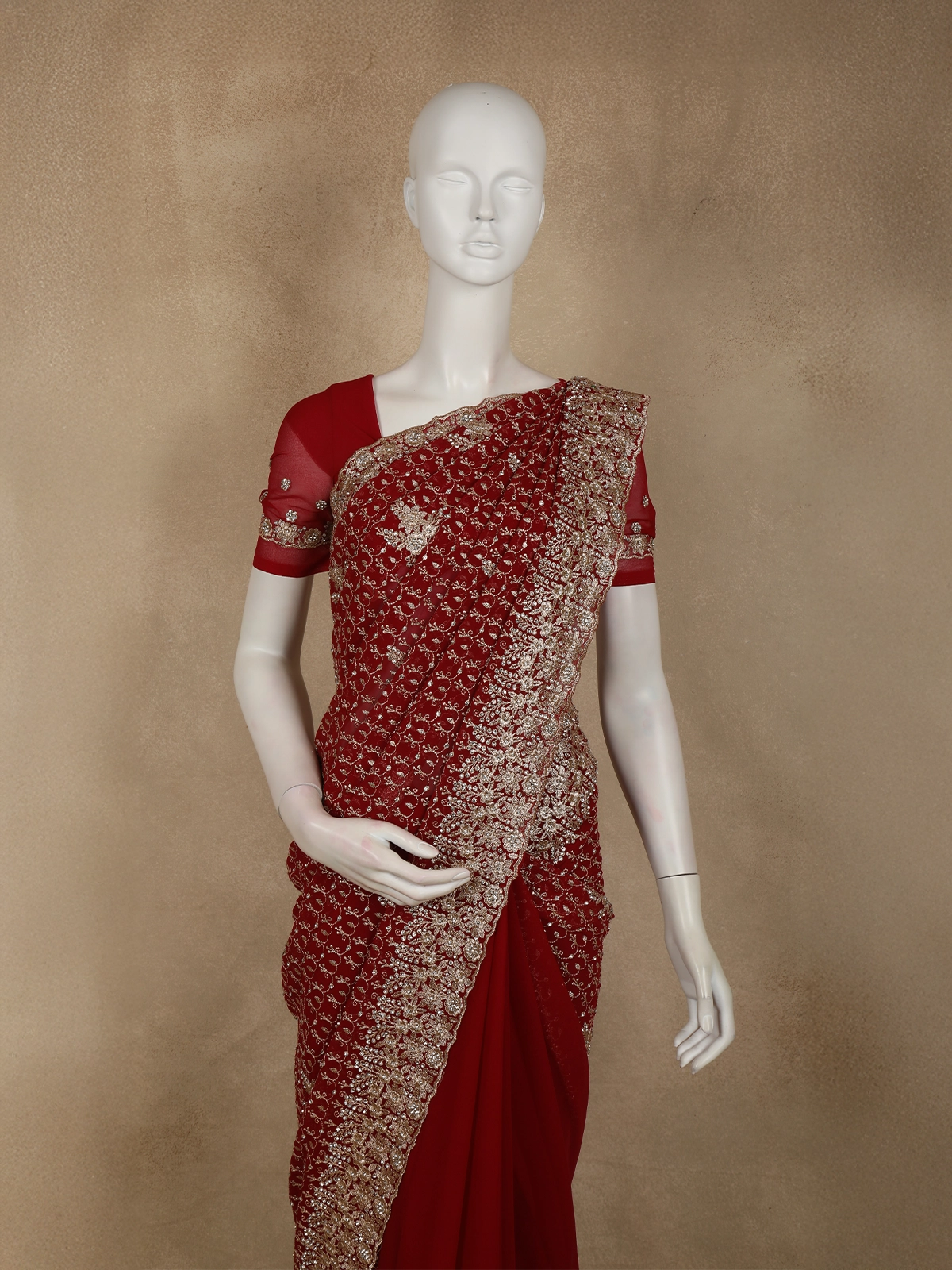 Rich Crimson Red Floral Zari Embroidered Design Georgette Designer Saree