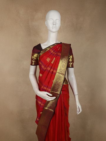 Perfect for weddings, auspicious ceremonies, and grand celebrations, this saree embodies South Indian luxury—where bold colour, intricate artistry, and timeless elegance come together in perfect harmony.