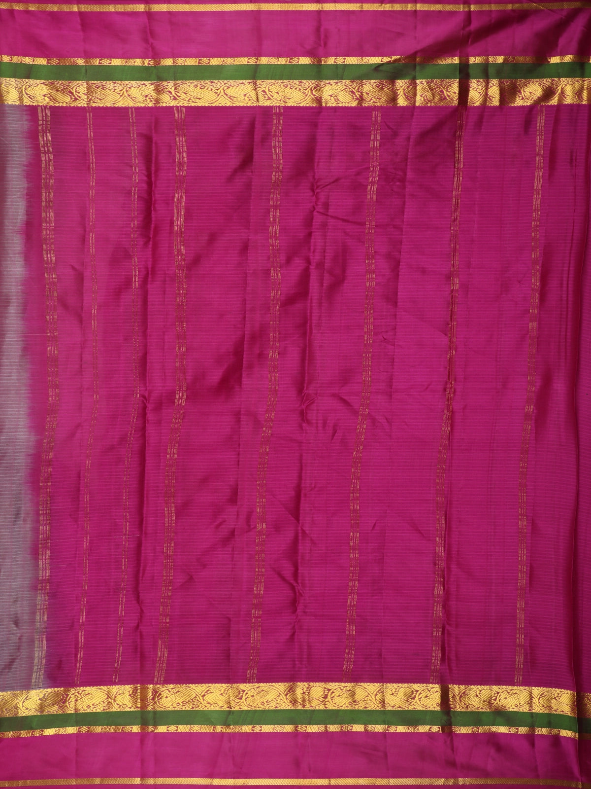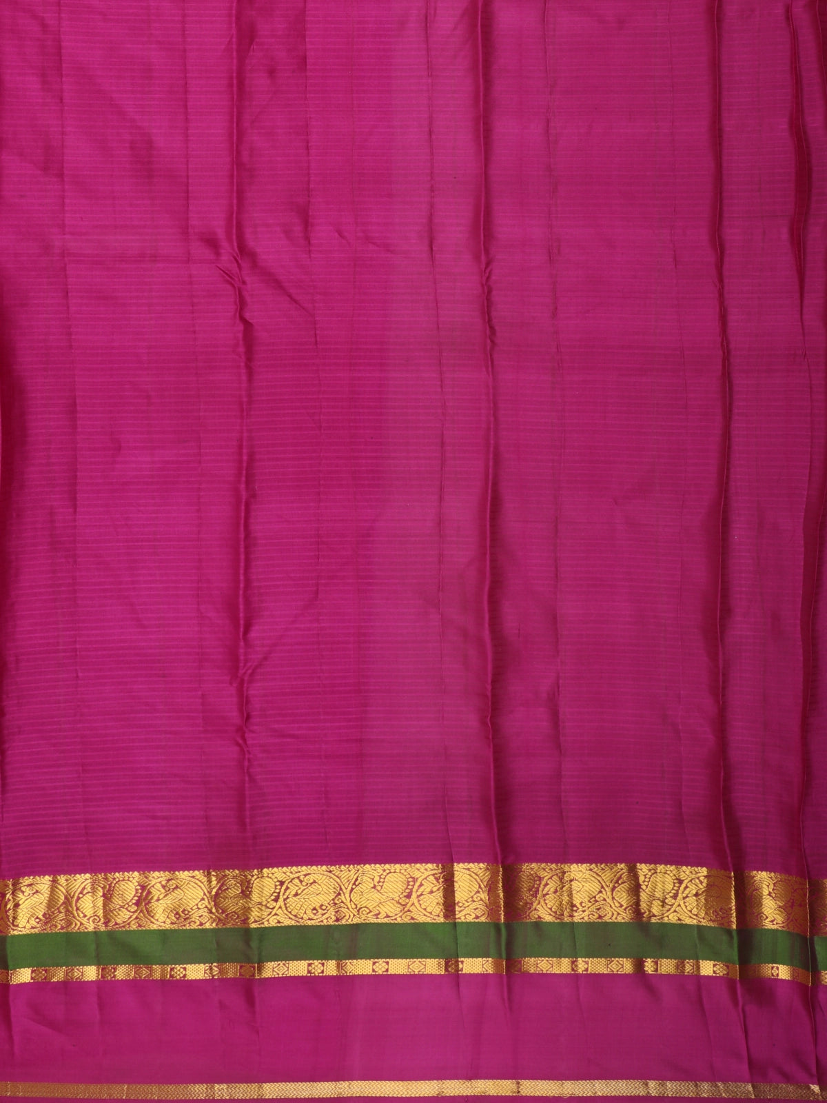 This exquisite Kanchipuram silk saree is woven in a luxurious rich magenta wine hue, radiating classic South Indian elegance with a regal depth. The saree features fine tonal striped weaving across the body, adding subtle texture and graceful movement while enhancing the richness of the silk’s natural sheen.