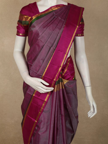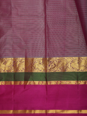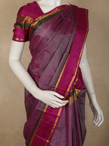 Rich Magenta Wine Striped Woven Design Kanchipuram Silk Saree with Peacock Zari Border
