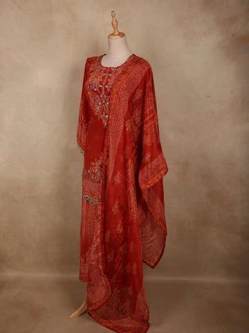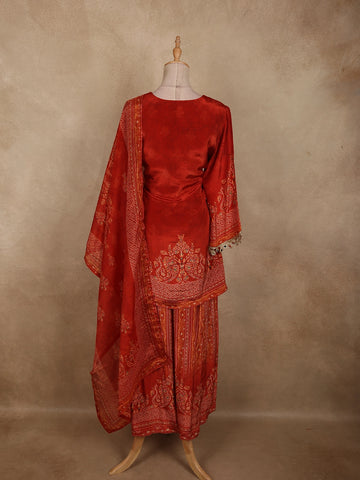 Rich Rusty Maroon Red Floral Printed Design Cotton Palazzo Suit