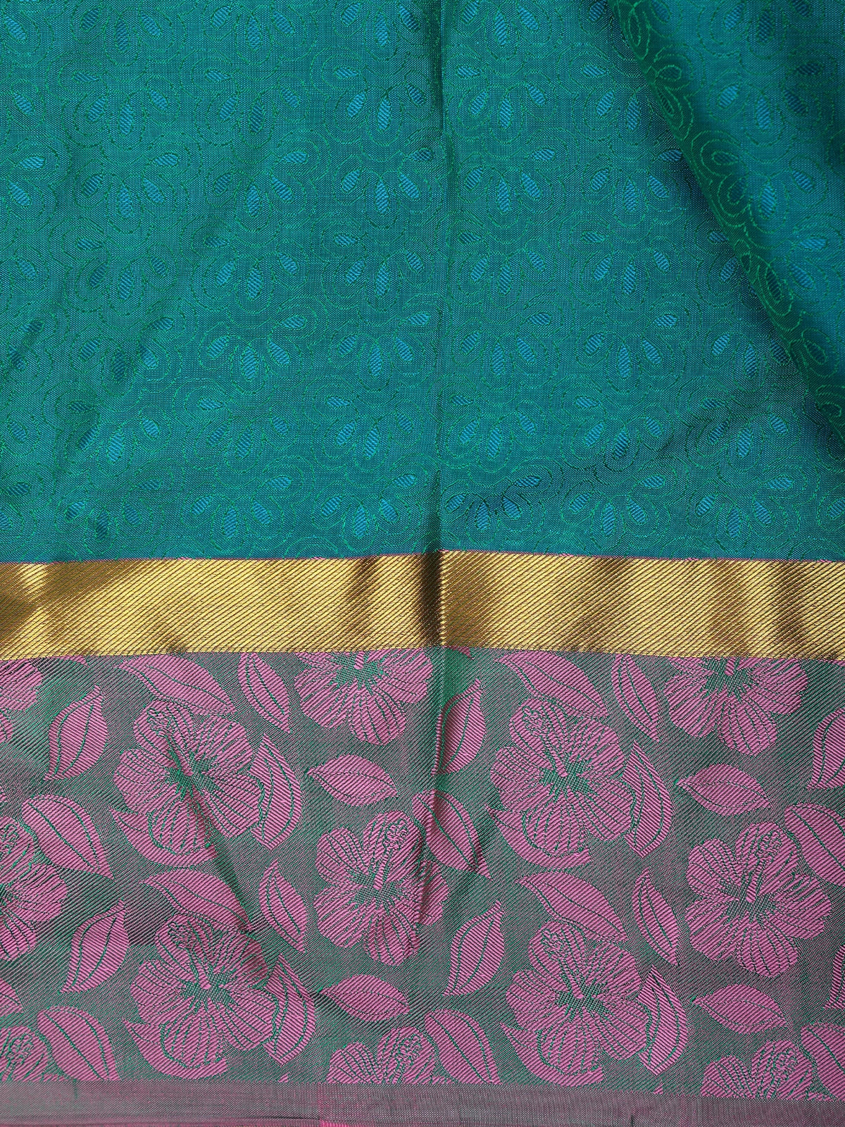 Rich Teal Green Floral Woven Design Kanchipuram Silk Saree with Contrast Border