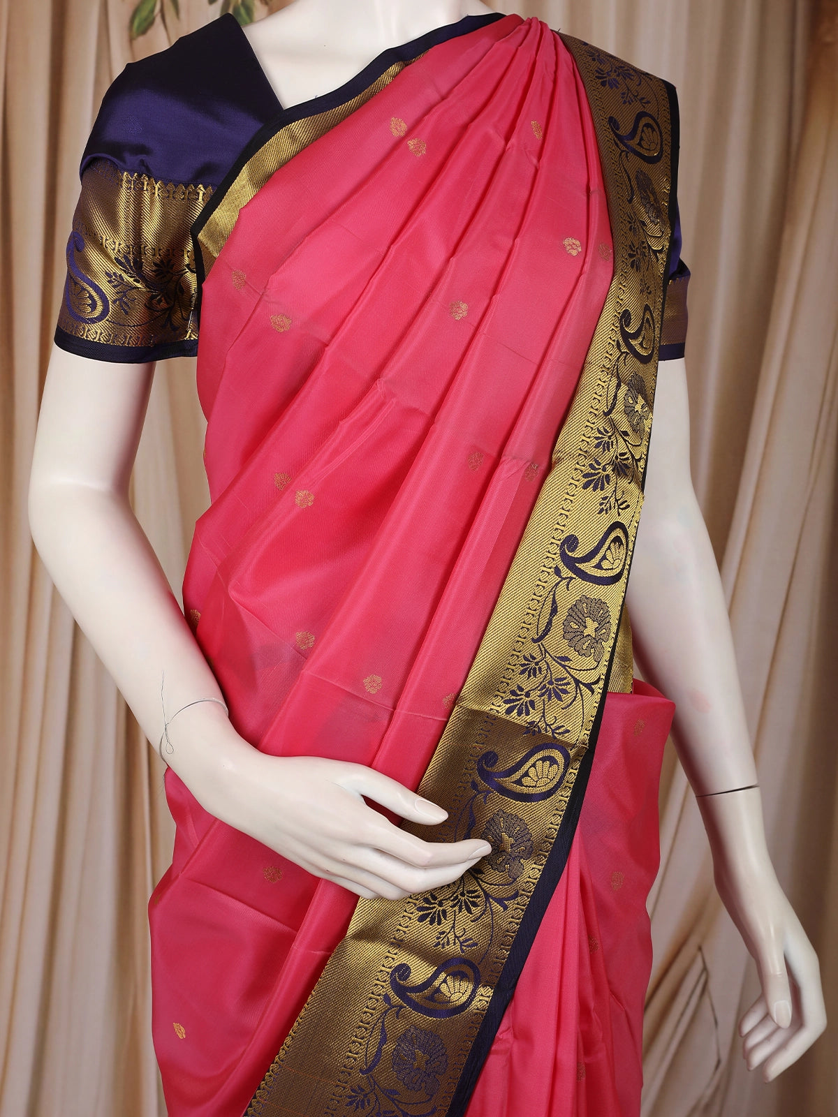Rose Pink Butta Woven Design Kanchipuram Silk Saree with Contrast Border