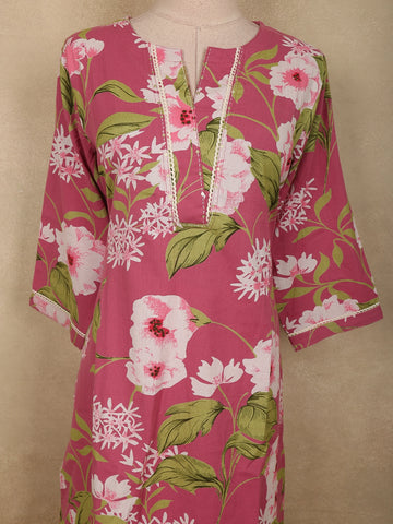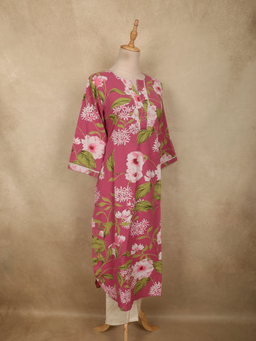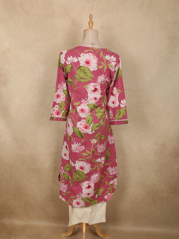 Rose Pink Floral Printed Design Cotton Salwar Suit