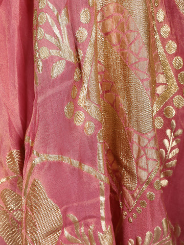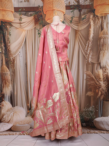 Rose Pink Floral Woven Silk Lehenga