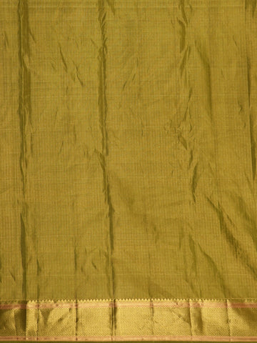 Paired with a matching olive green blouse with gold accents, this saree presents a refined and traditional ensemble. Elegant, timeless, and richly detailed, it is a perfect addition for those who appreciate classic silk sarees with soft hues and heritage charm.