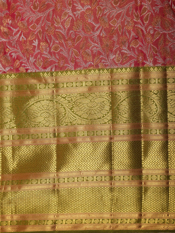 Celebrate timeless elegance with this Rose Pink Pure Kanchipuram Silk Saree, a graceful blend of soft femininity and traditional craftsmanship. The warm rose pink base radiates a gentle richness, making it an exquisite choice for weddings, festive celebrations, and auspicious occasions.
