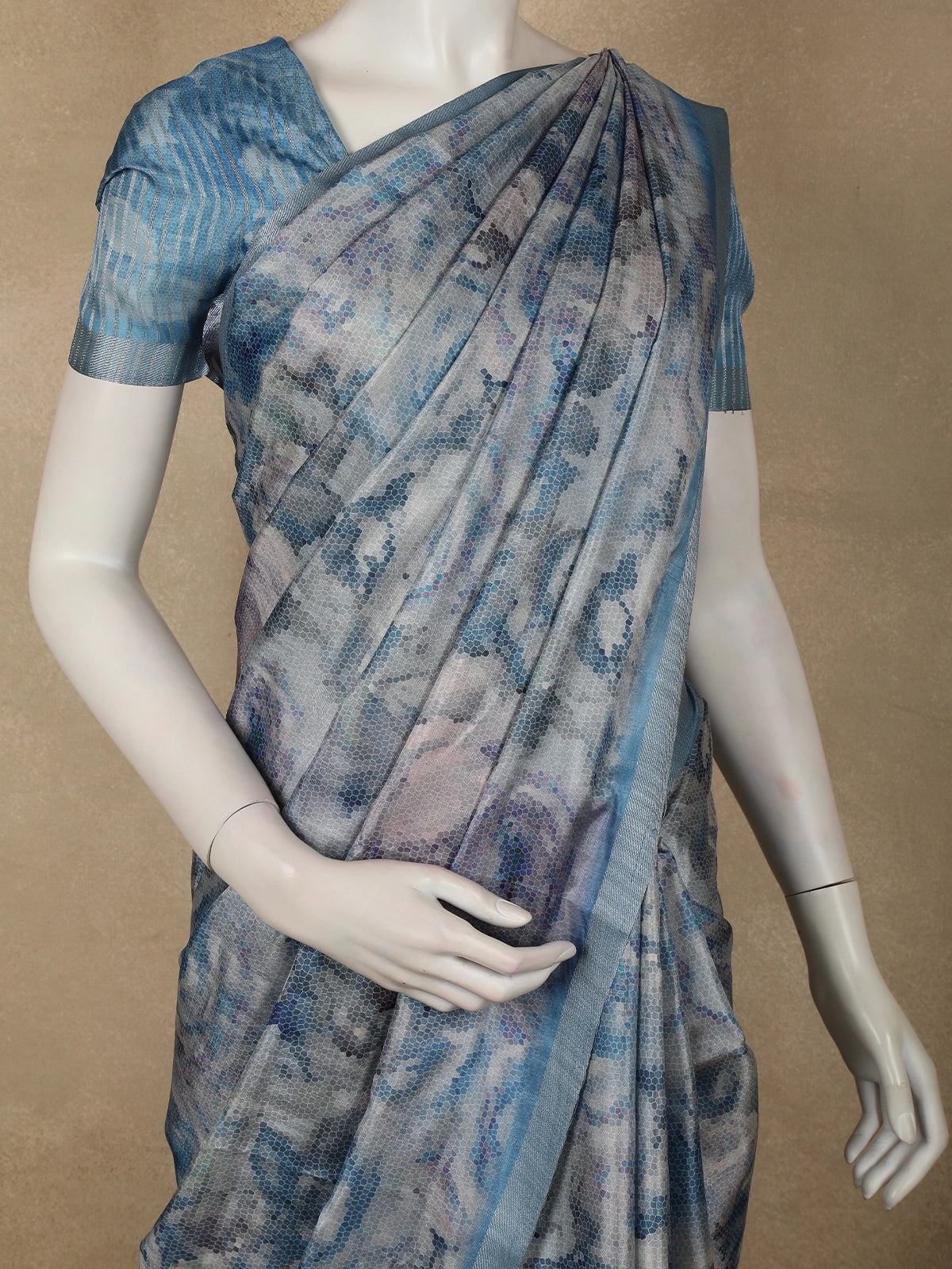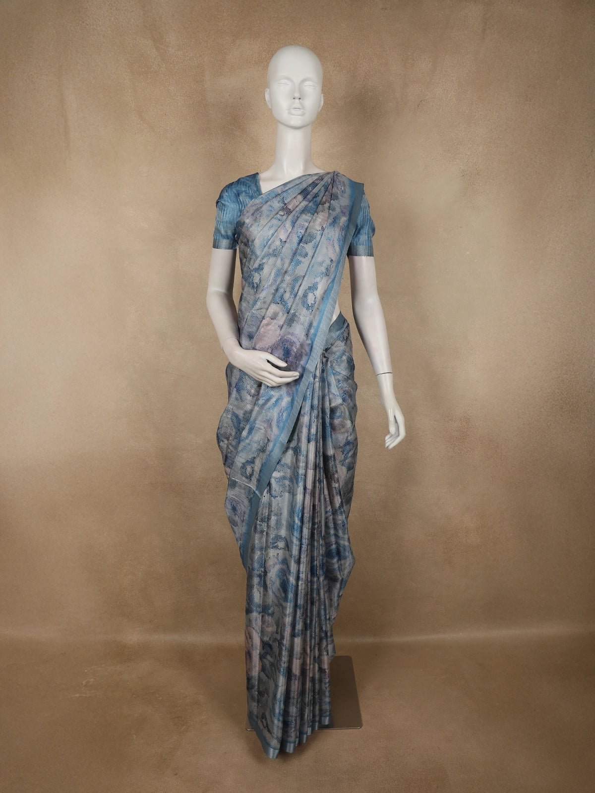 Paired with a matching blouse in a coordinated blue tone, this saree is well-suited for office wear, casual gatherings, daytime functions, festive brunches, and elegant social occasions. Style it with minimal silver jewellery or oxidised accessories for a chic, contemporary look, or keep it classic with simple studs and bangles for effortless sophistication.