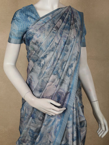 Elevate your everyday elegance with this Royal Blue Abstract Printed Design Semi Tussar Fancy Saree, a perfect blend of contemporary artistry and classic charm. The saree features a soothing royal blue base with soft grey undertones, enhanced by abstract-inspired prints that flow gracefully across the body, giving it a modern yet understated appeal.