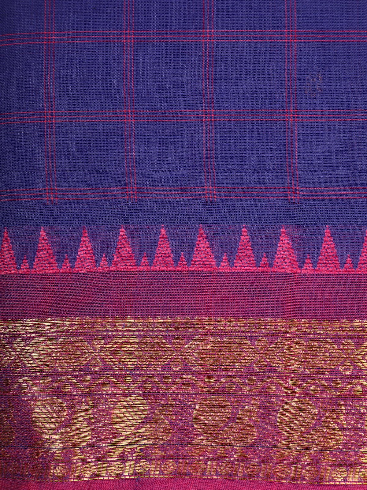 Royal Blue Checked Cotton Saree with Pink Zari Temple Border