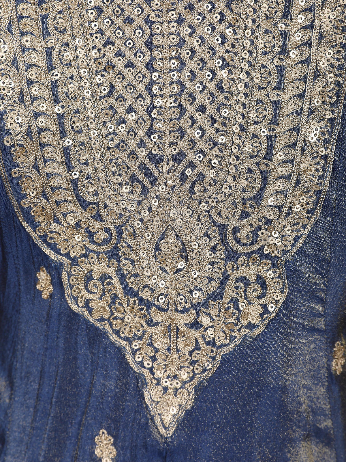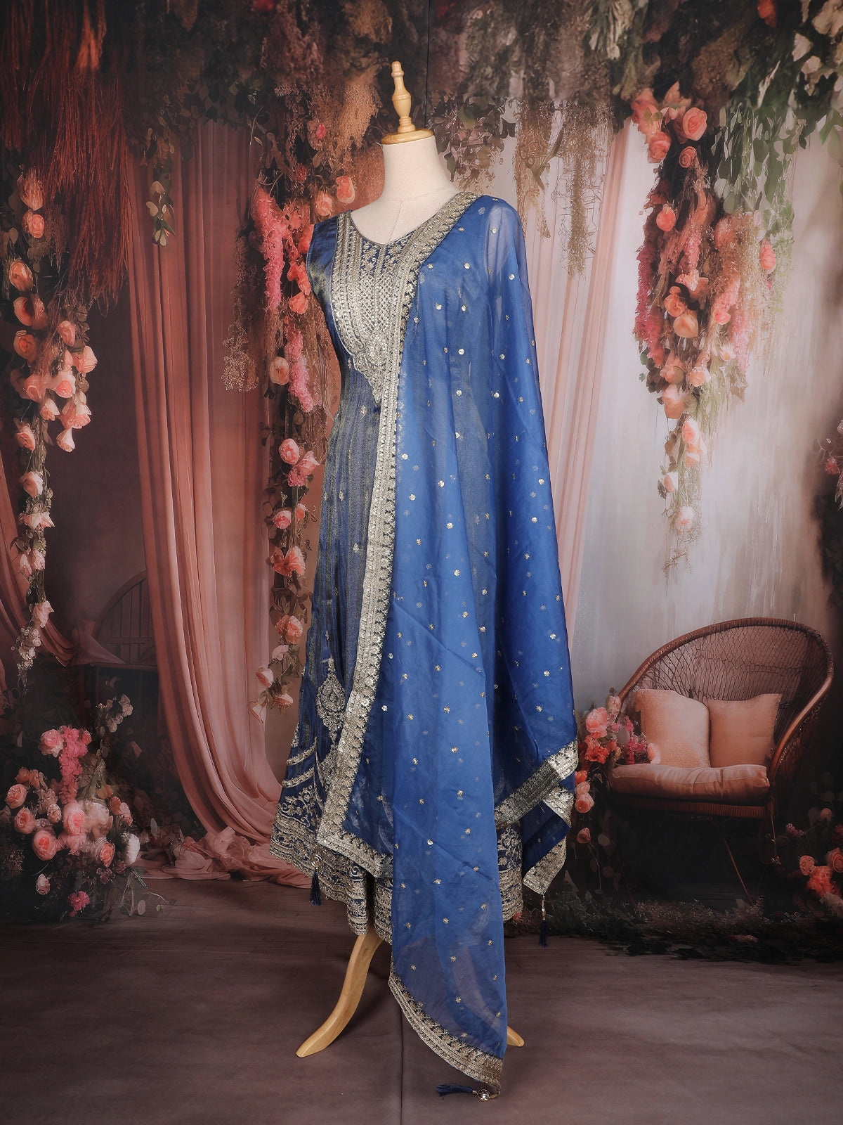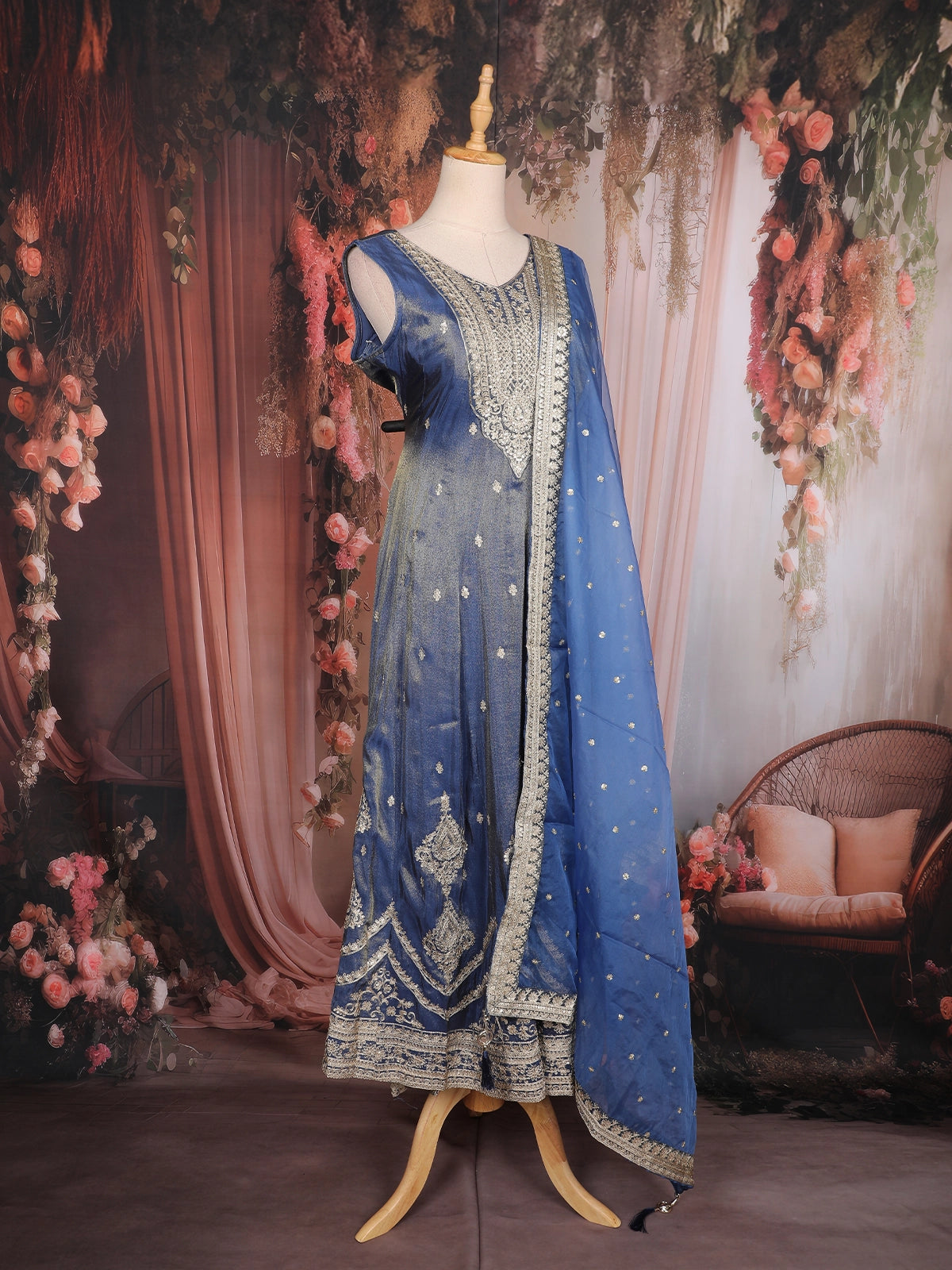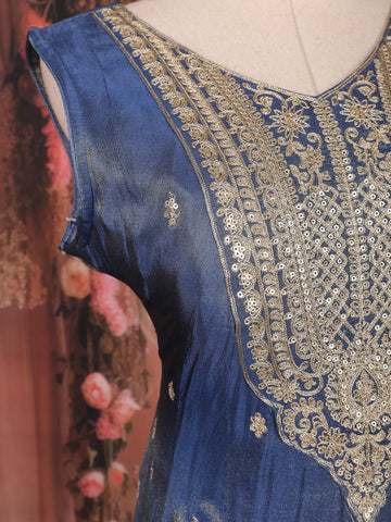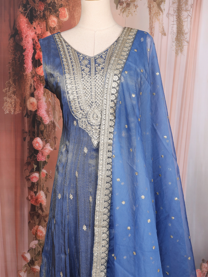 Royal Blue Floral Design Tissue Silk Salwar Suit with Dupatta