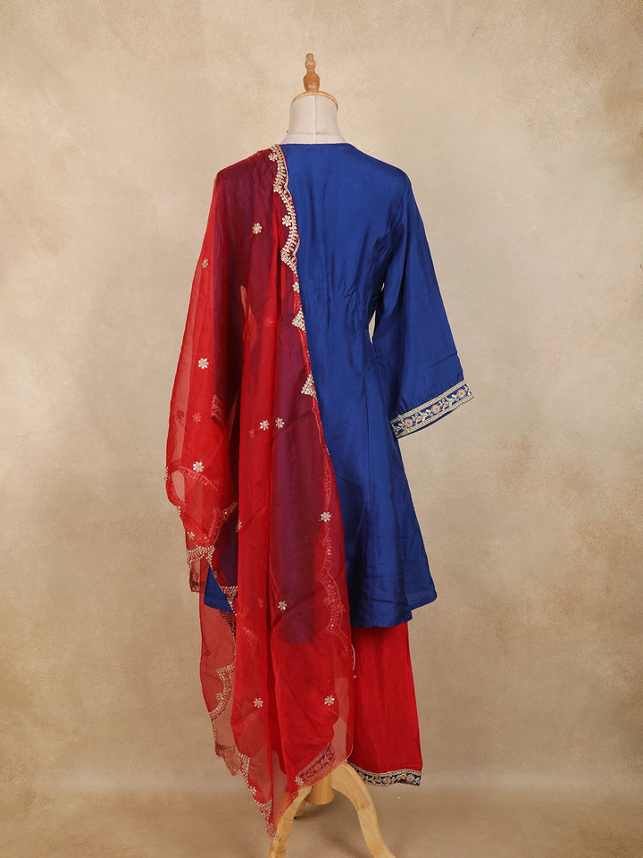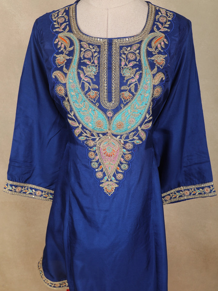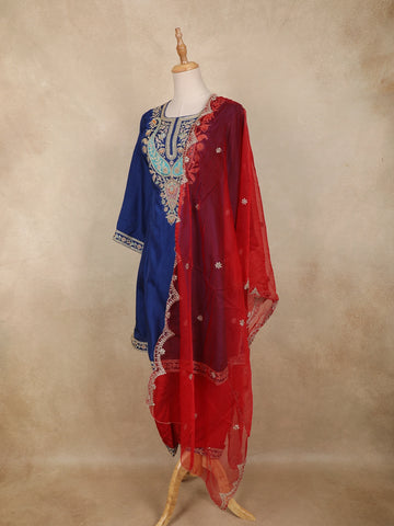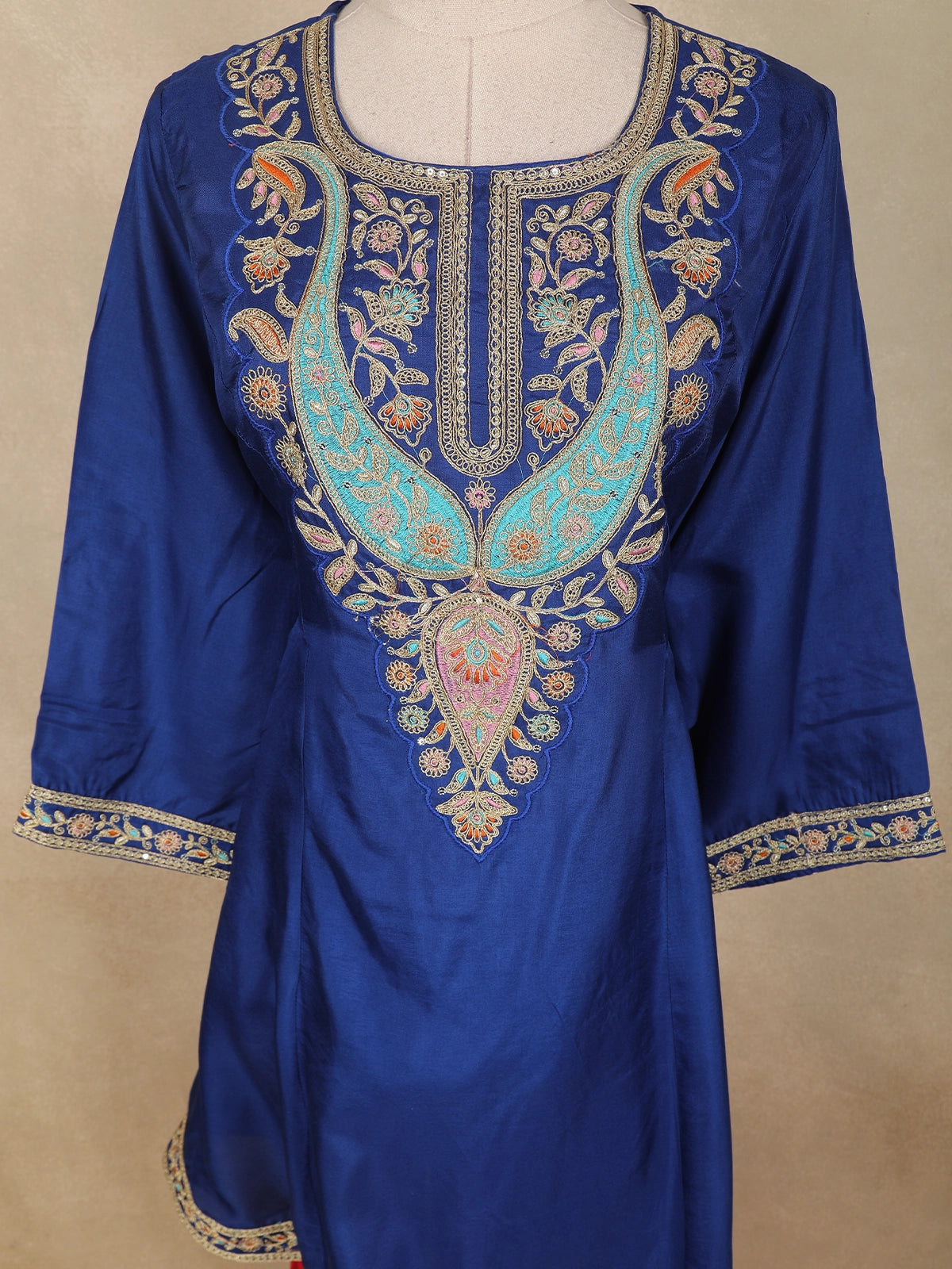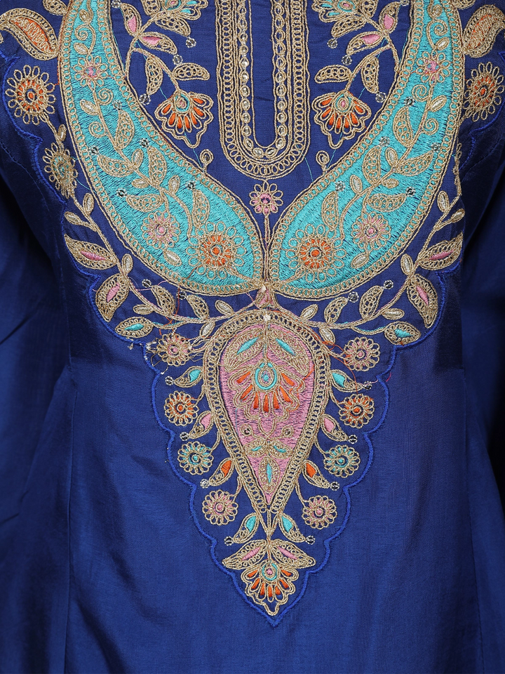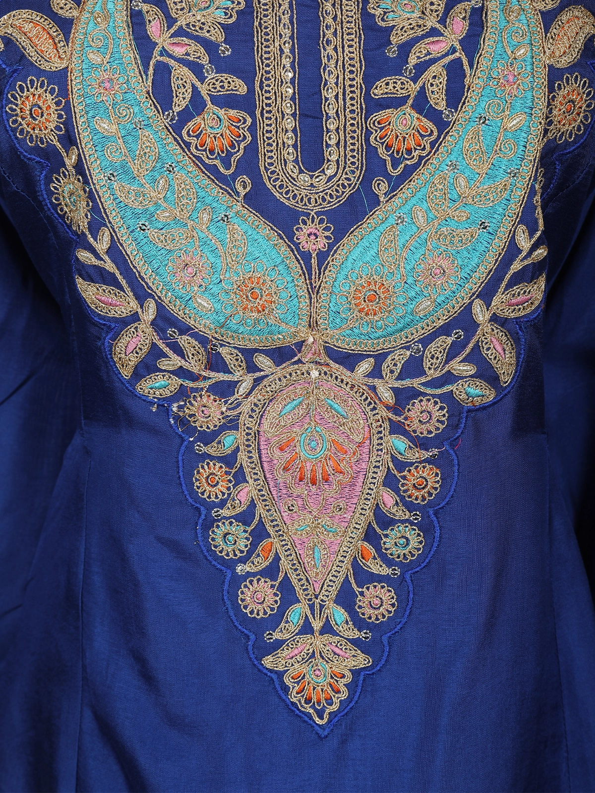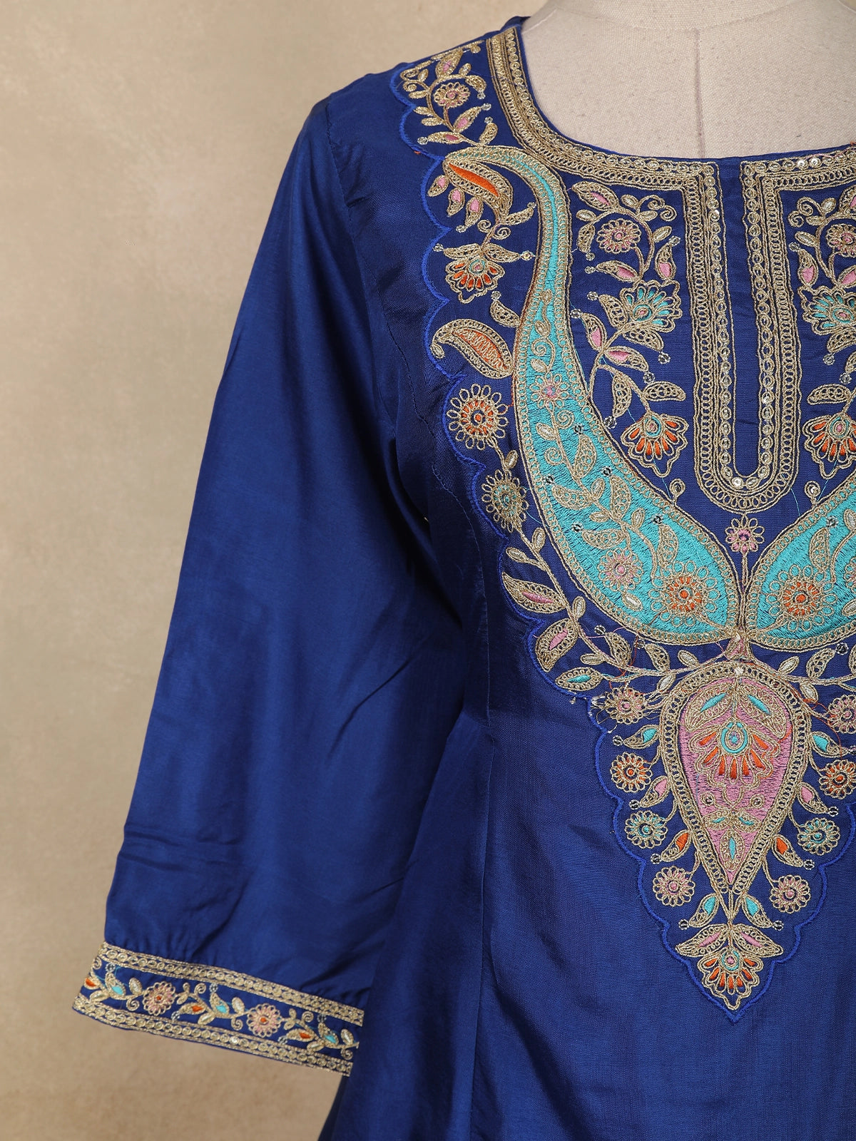 Royal Blue Floral Embroidered Silk Cotton Salwar Suit with Dupatta