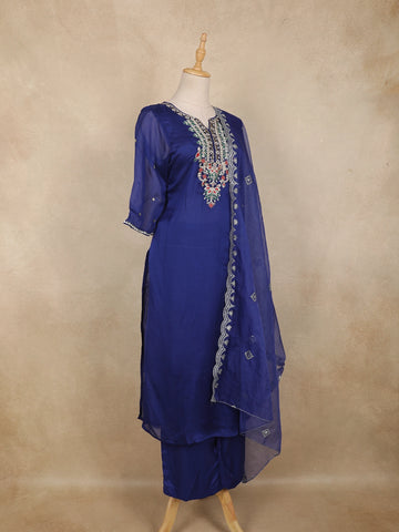 Royal Blue Floral Embroidery Tissue Silk Salwar Suit