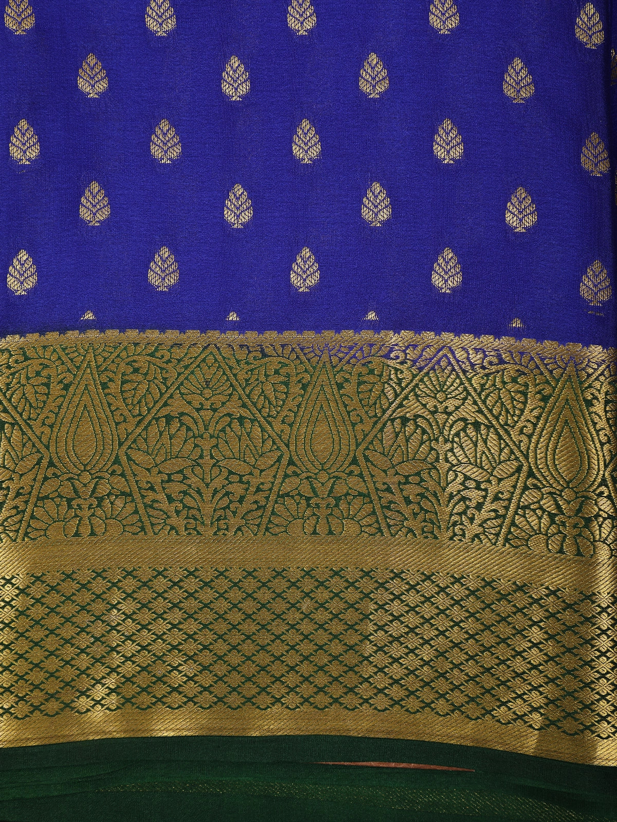 Royal Blue Leaf Butta Design Mysore Silk Designer Saree with Contrast Zari Border