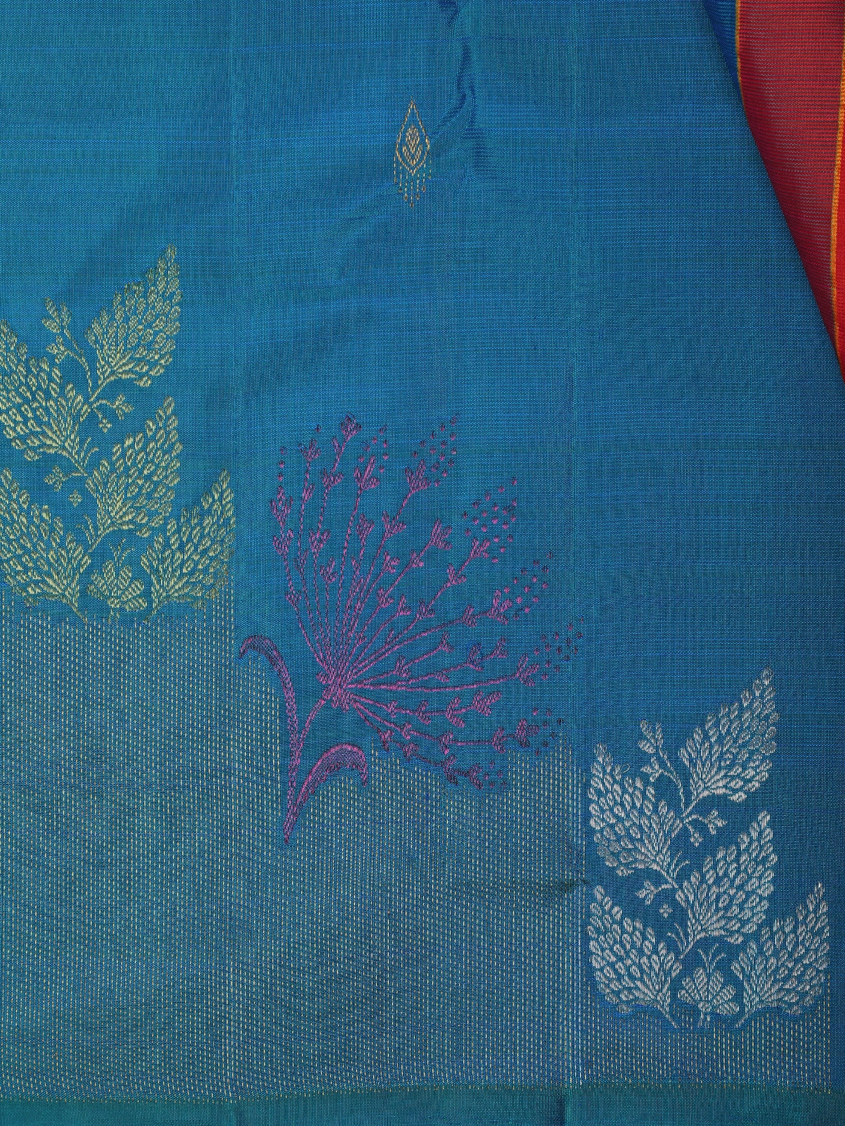 Royal Blue Leaf Woven Design Pure Kanchipuram Silk Saree with Self Border