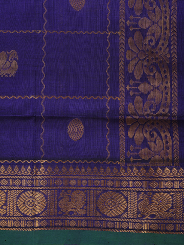 Royal Blue Paisley Butta Design Silk Cotton Saree with Contrast Temple Border