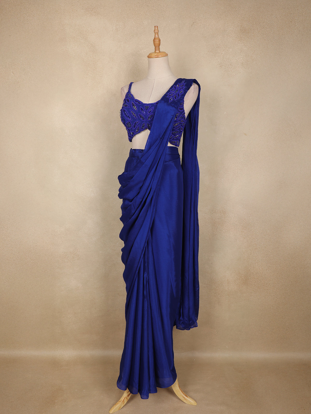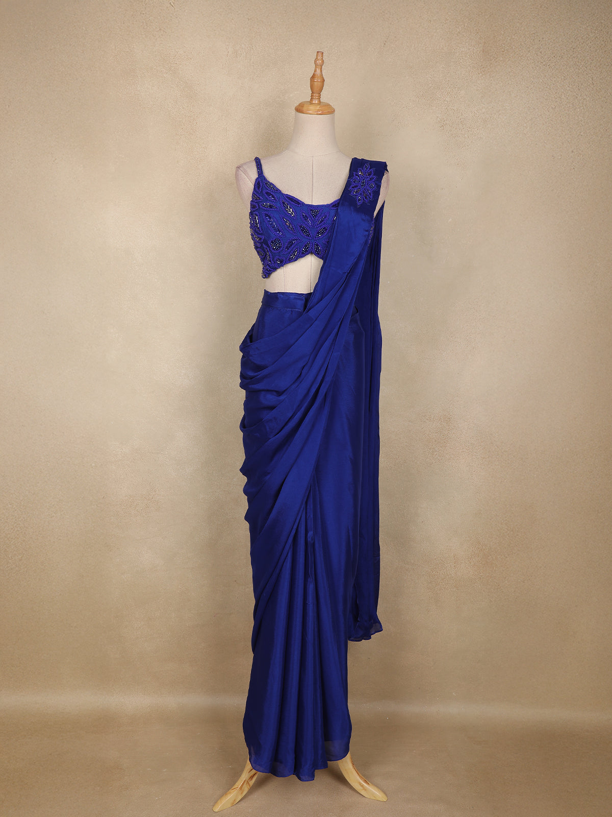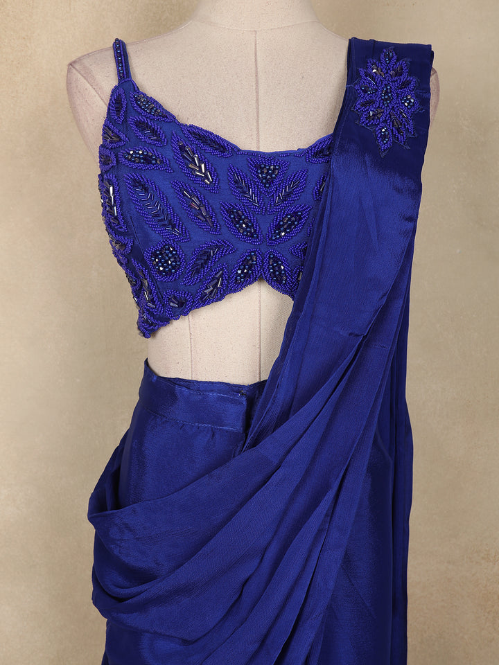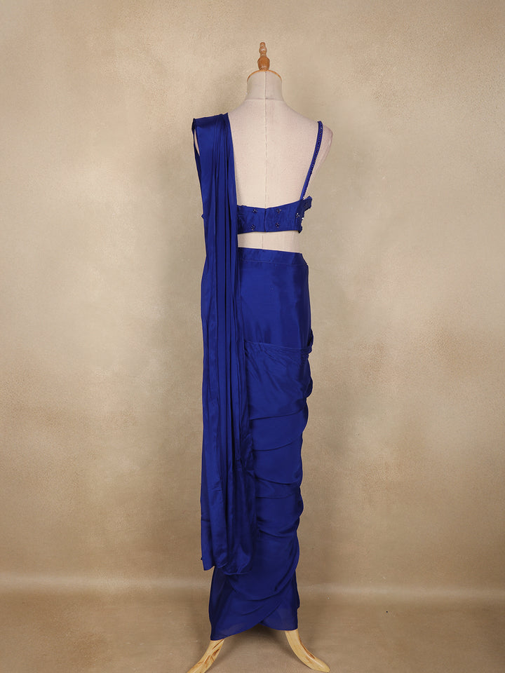 Step into the spotlight with this mesmerizing Royal Blue Ready-to-Wear Georgette Saree that blends contemporary glamour with effortless elegance. Draped in lightweight and flowy georgette, the saree is beautifully adorned with shimmering sequins work, creating a dazzling play of light with every move. The pre-stitched silhouette ensures quick and perfect draping, making it ideal for modern women who love style without compromise.
