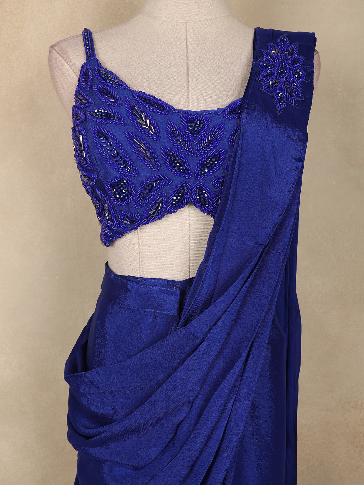 Paired with a stunning designer blouse enriched with coordinated sequin embellishments, this ensemble brings a luxurious festive charm. The rich royal blue tone lends a regal appeal, making it perfect for evening events, celebrations, and cocktail occasions.