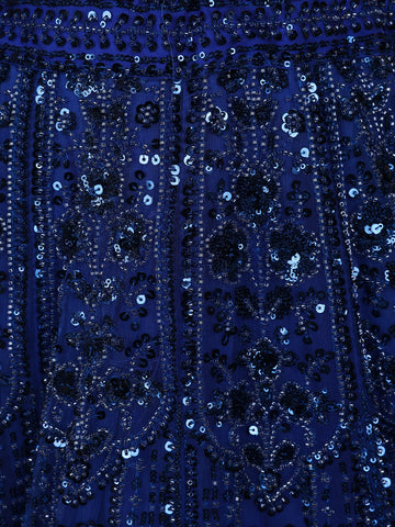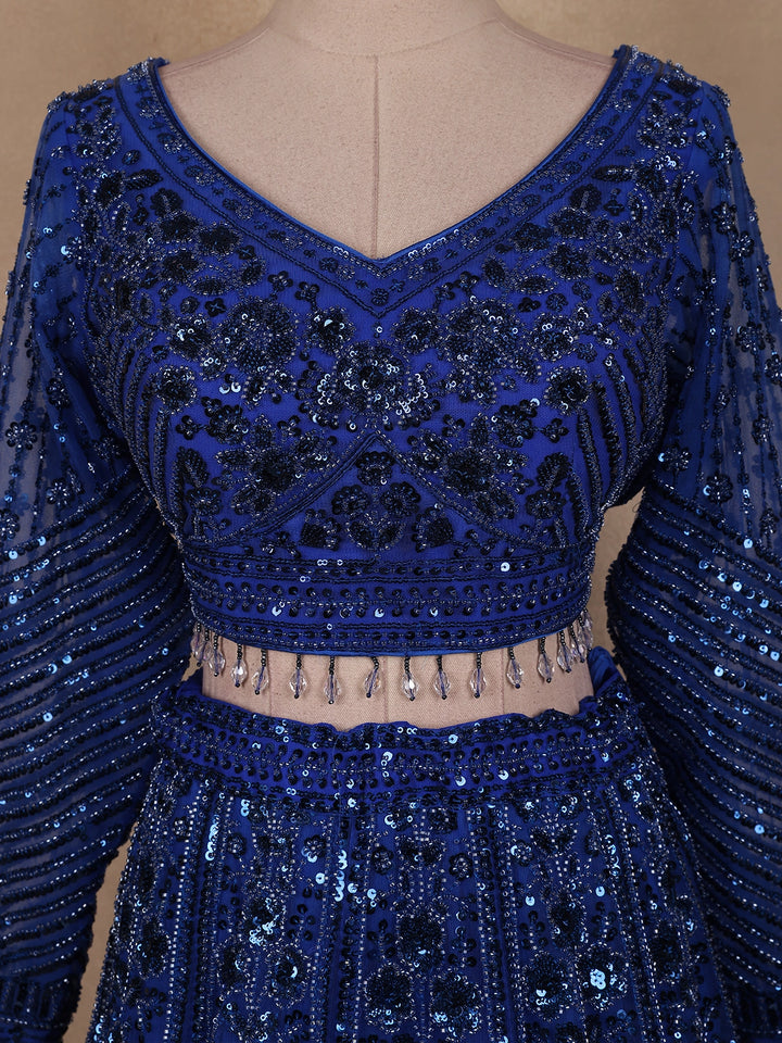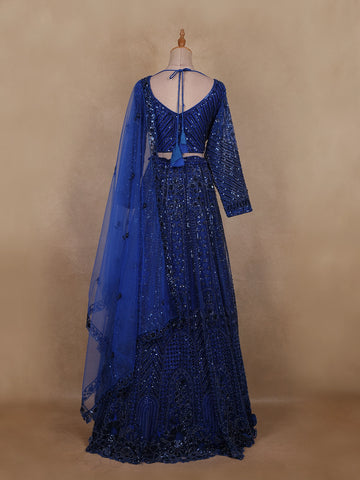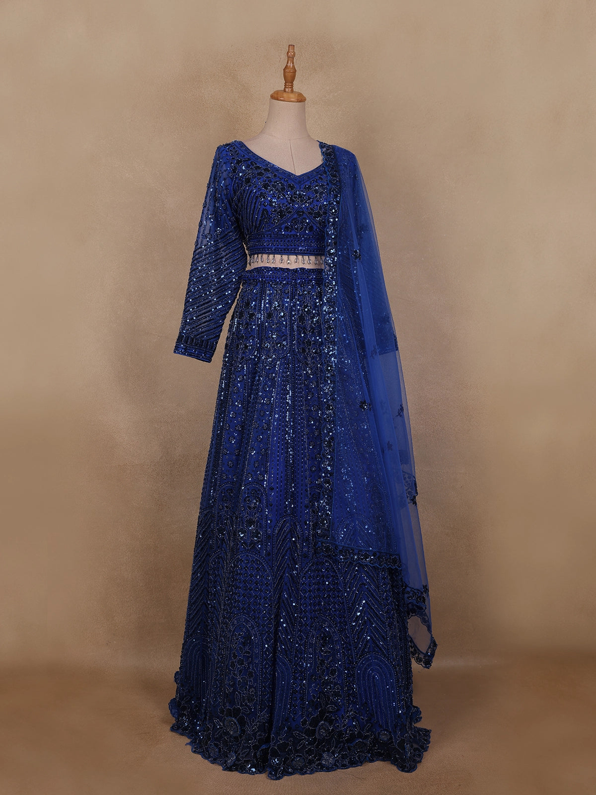 Royal Blue Sequins Embroidered Design Net Lehenga with Dupatta