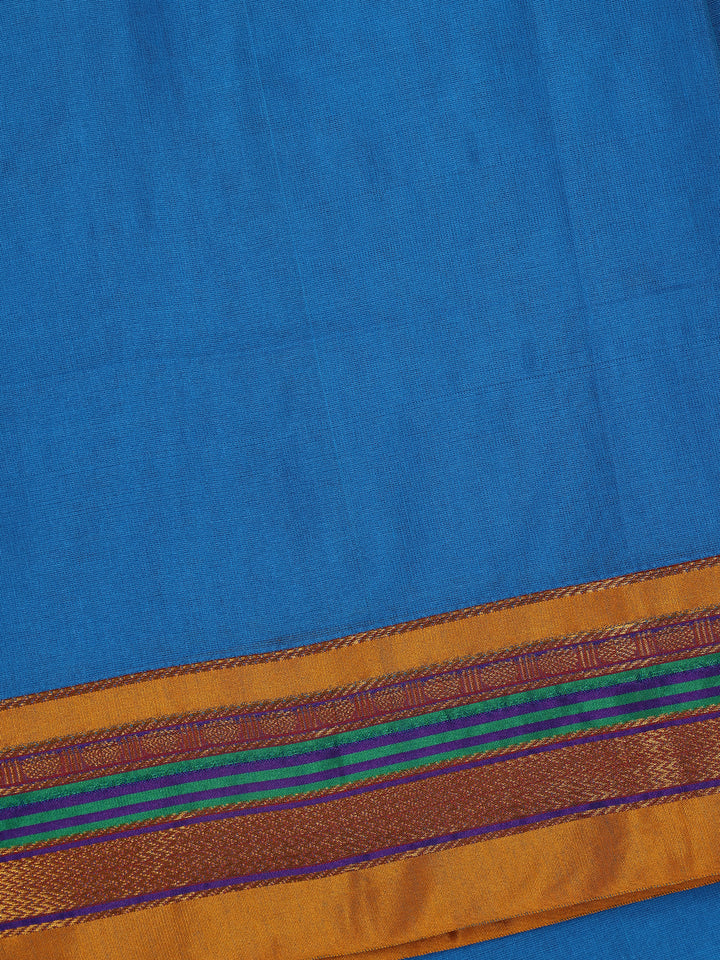 Royal Blue Solid Design Semi Silk Cotton Saree with Contrast Border