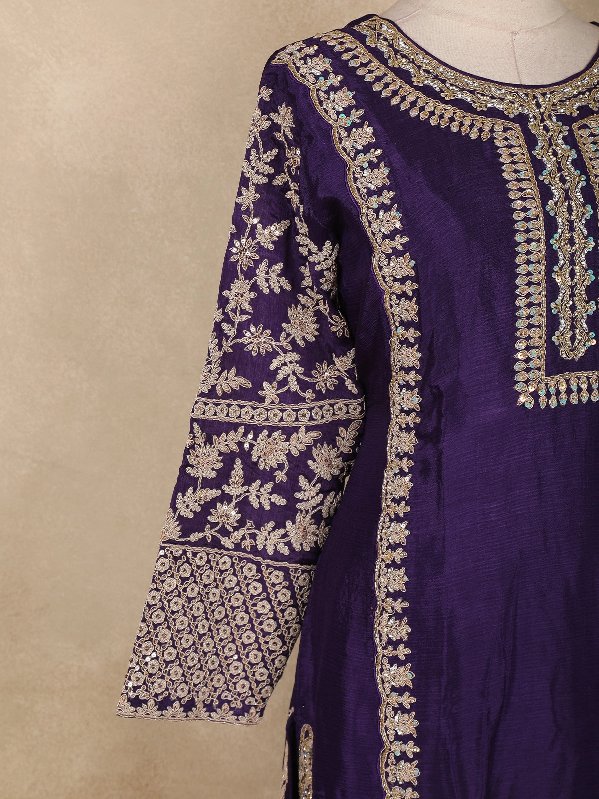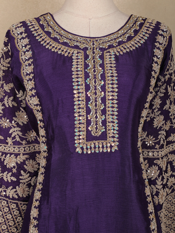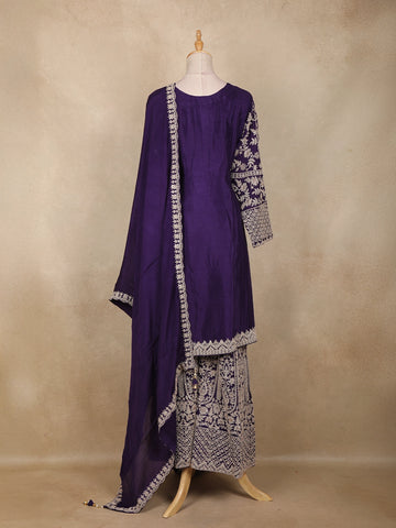 Royal Purple Floral Sequins and Thread Embroidered Crepe Palazzo Suit with Dupatta