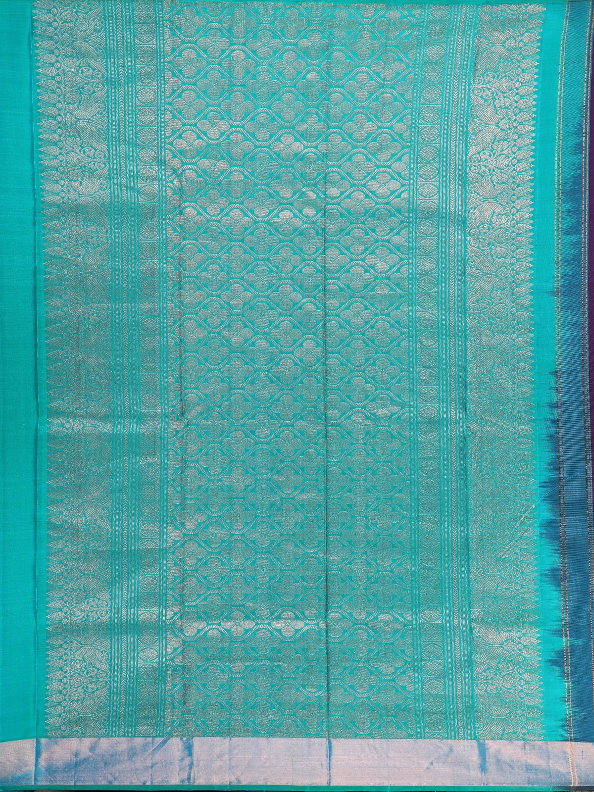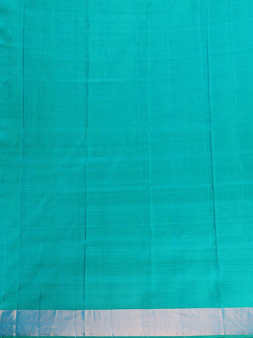 Complementing the saree is a striking contrast blouse in Teal Green, which adds a vibrant pop of color and enhances the regal look of the ensemble. The saree is finished with a traditional zari pallu and border, showcasing intricate craftsmanship synonymous with authentic Kanchipuram silk.