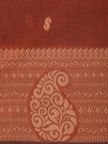Rust Brown Paisley Butta Woven Design Cotton Saree with Self Border