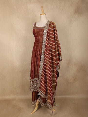 Rust Brown Sequins Embroidery Design Tissue Silk Palazzo Suit with Designer Dupatta