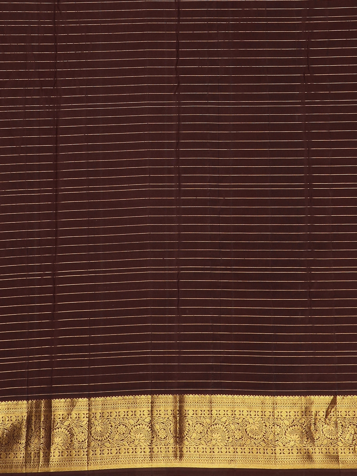 The luxurious gold zari border and intricately woven contrast brown pallu lend a regal finish, making it an ideal saree for weddings and traditional celebrations. Crafted from premium quality pure silk, this piece promises a graceful drape and a royal look with every step.