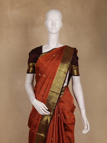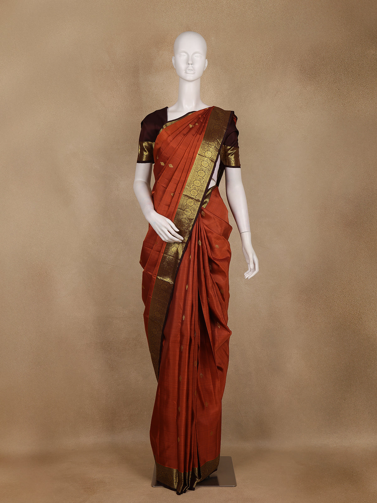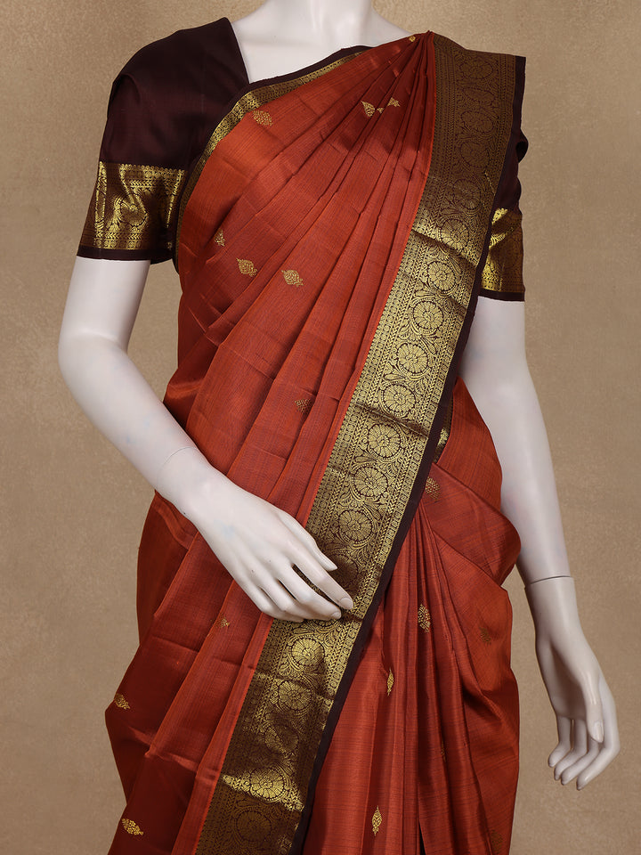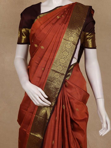 Rust Orange Butta Woven Design Pure Kanchipuram Silk Saree