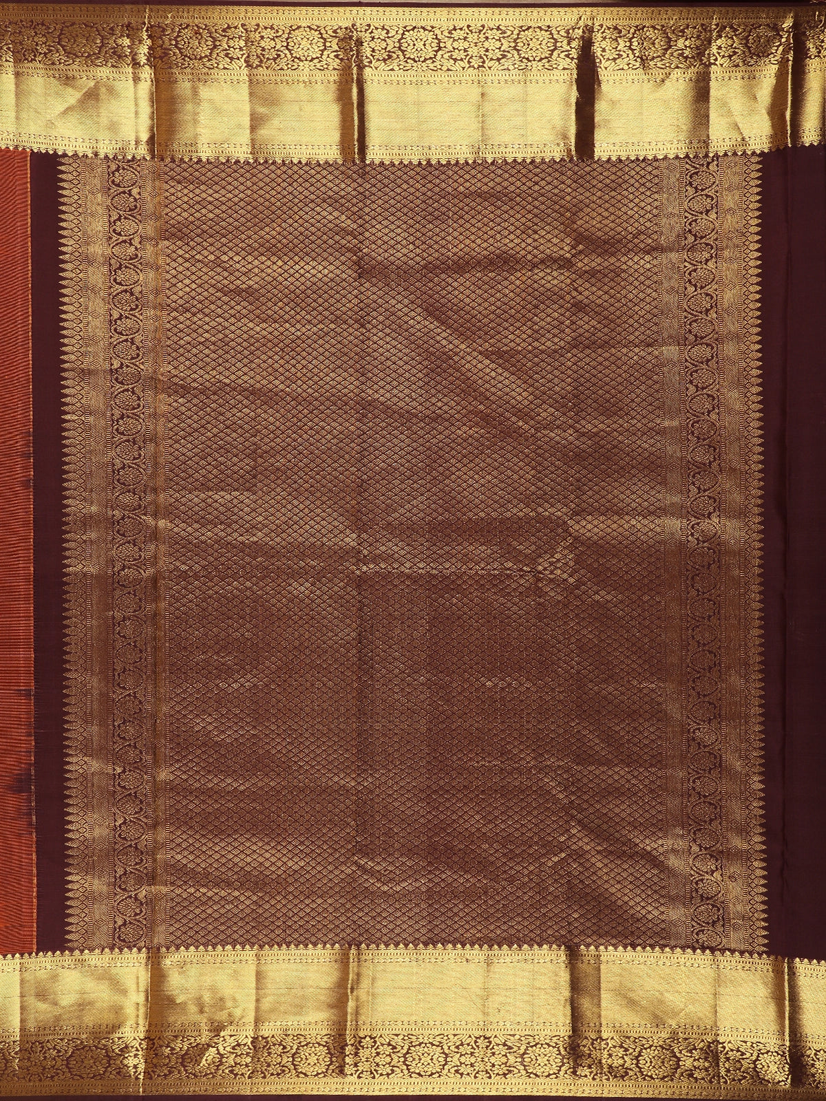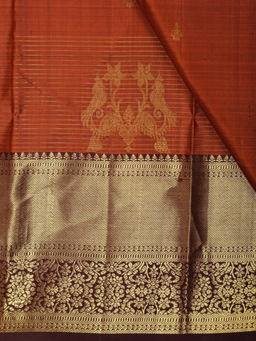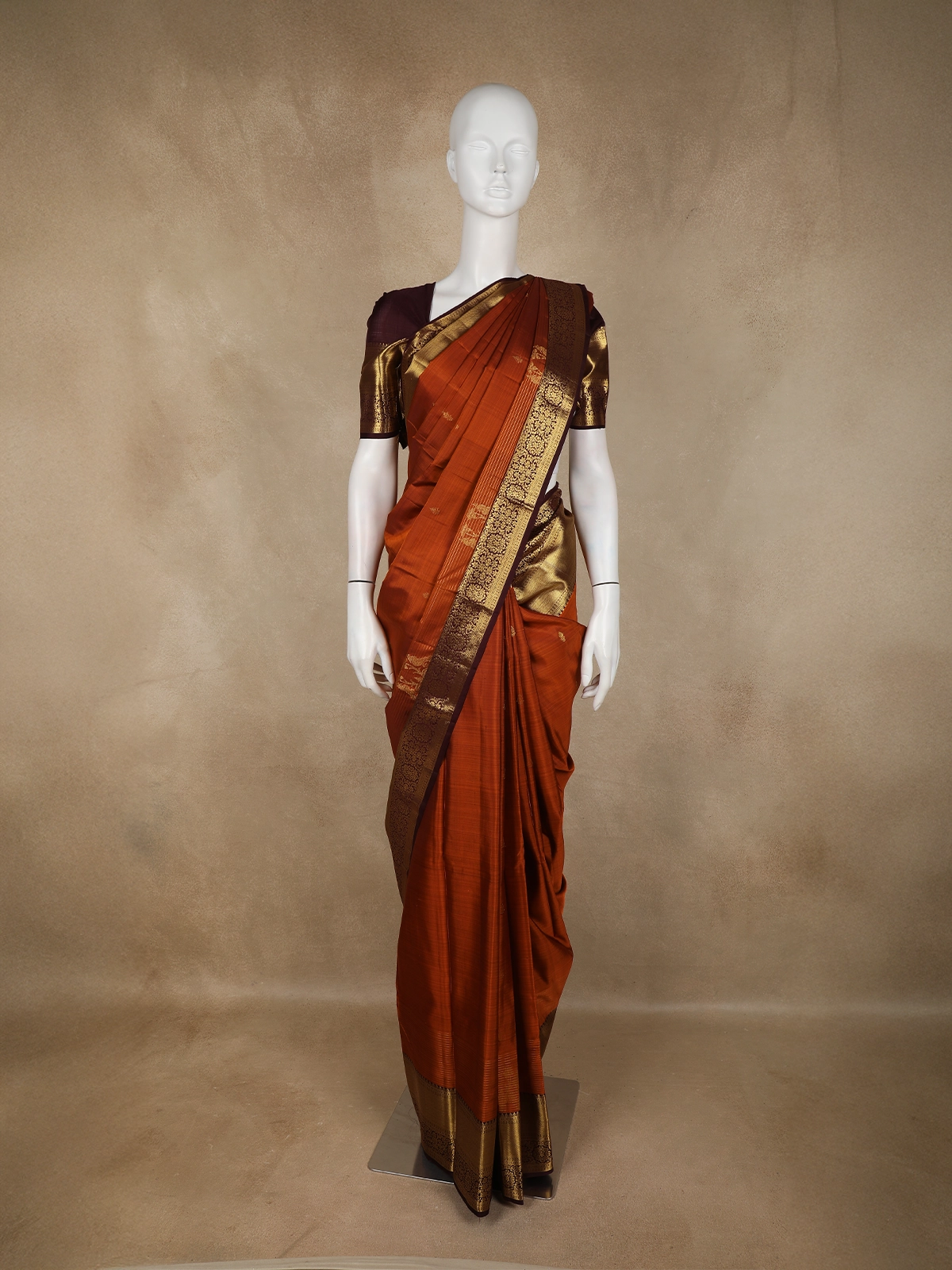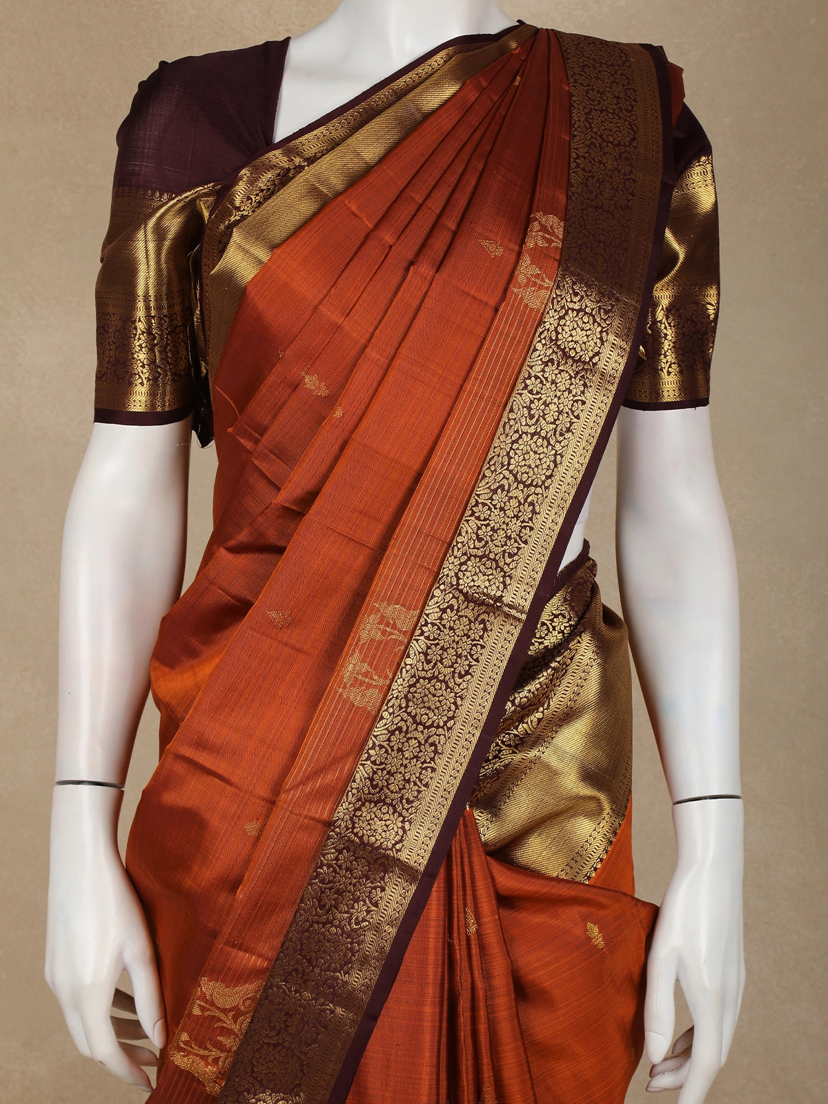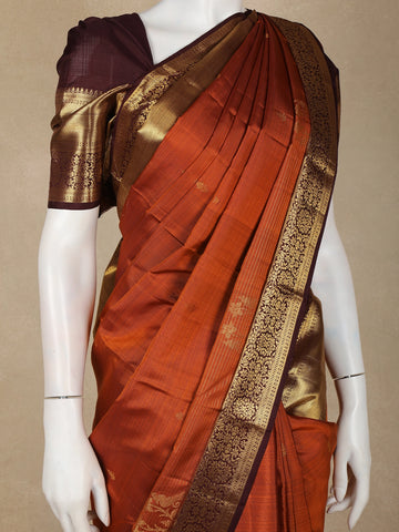 Rust Orange Butta Woven Design Pure Kanchipuram Silk Saree with Contrast Zari Border