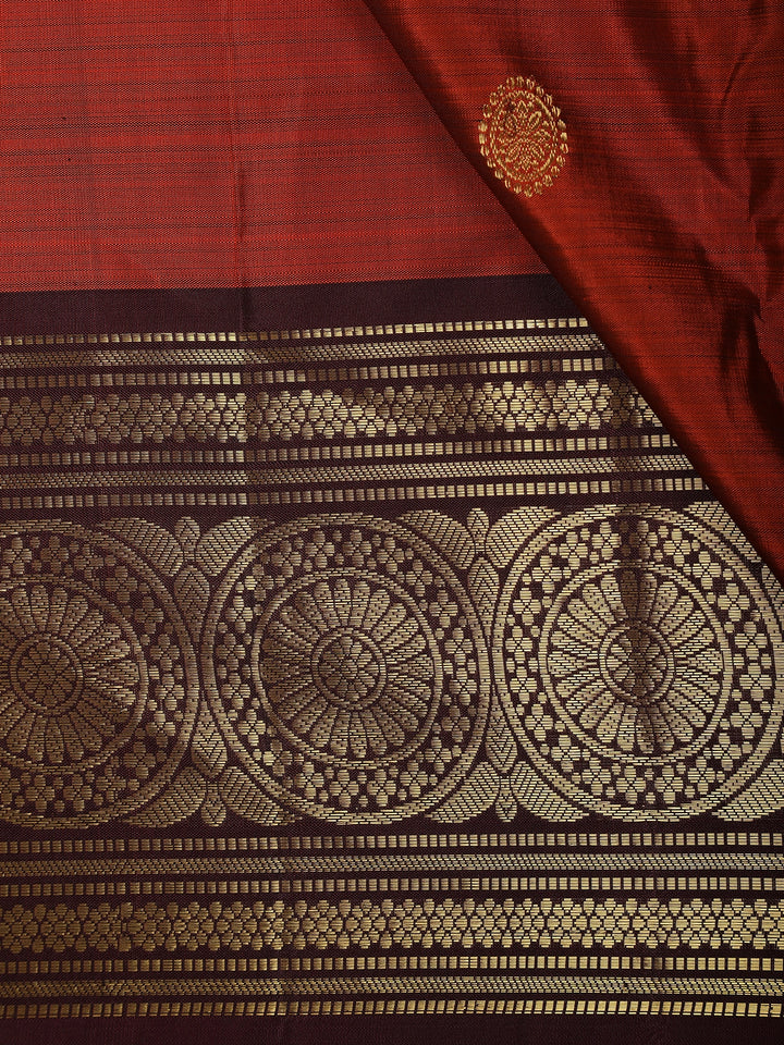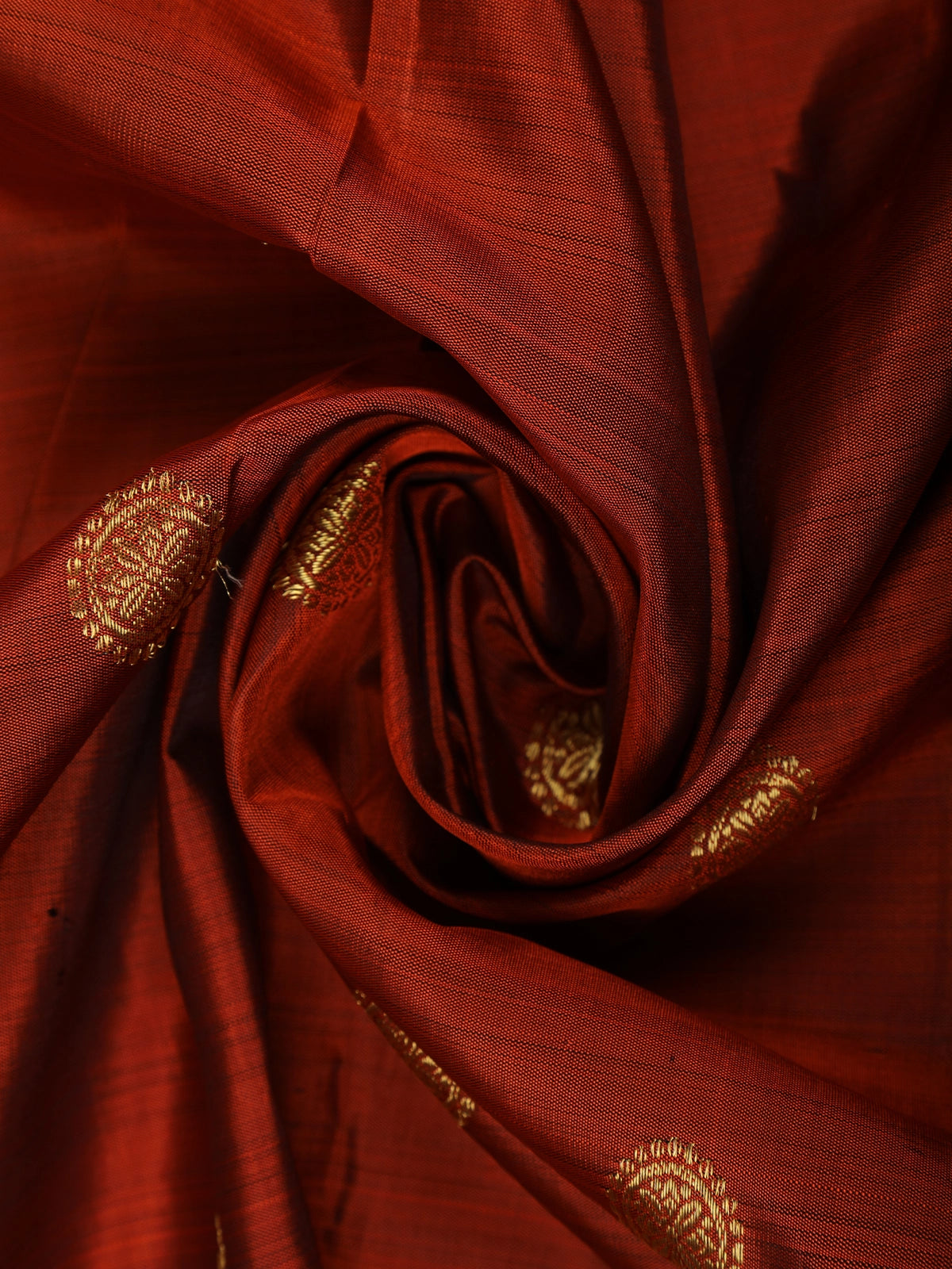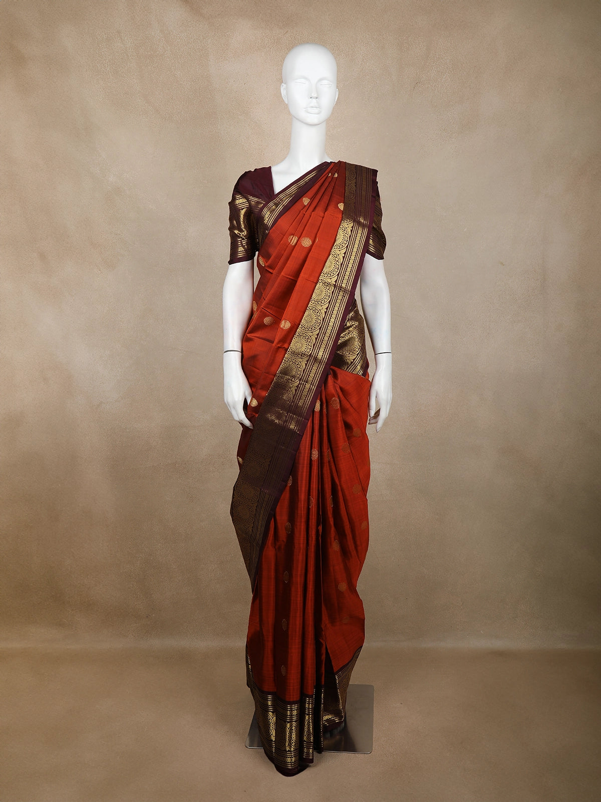 Rust Orange Butta Woven Design Pure Kanchipuram Silk Saree with Contrast Zari Woven Border