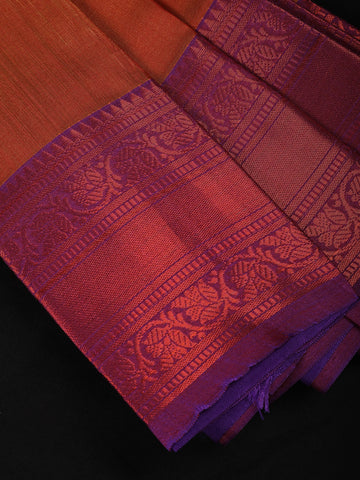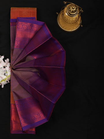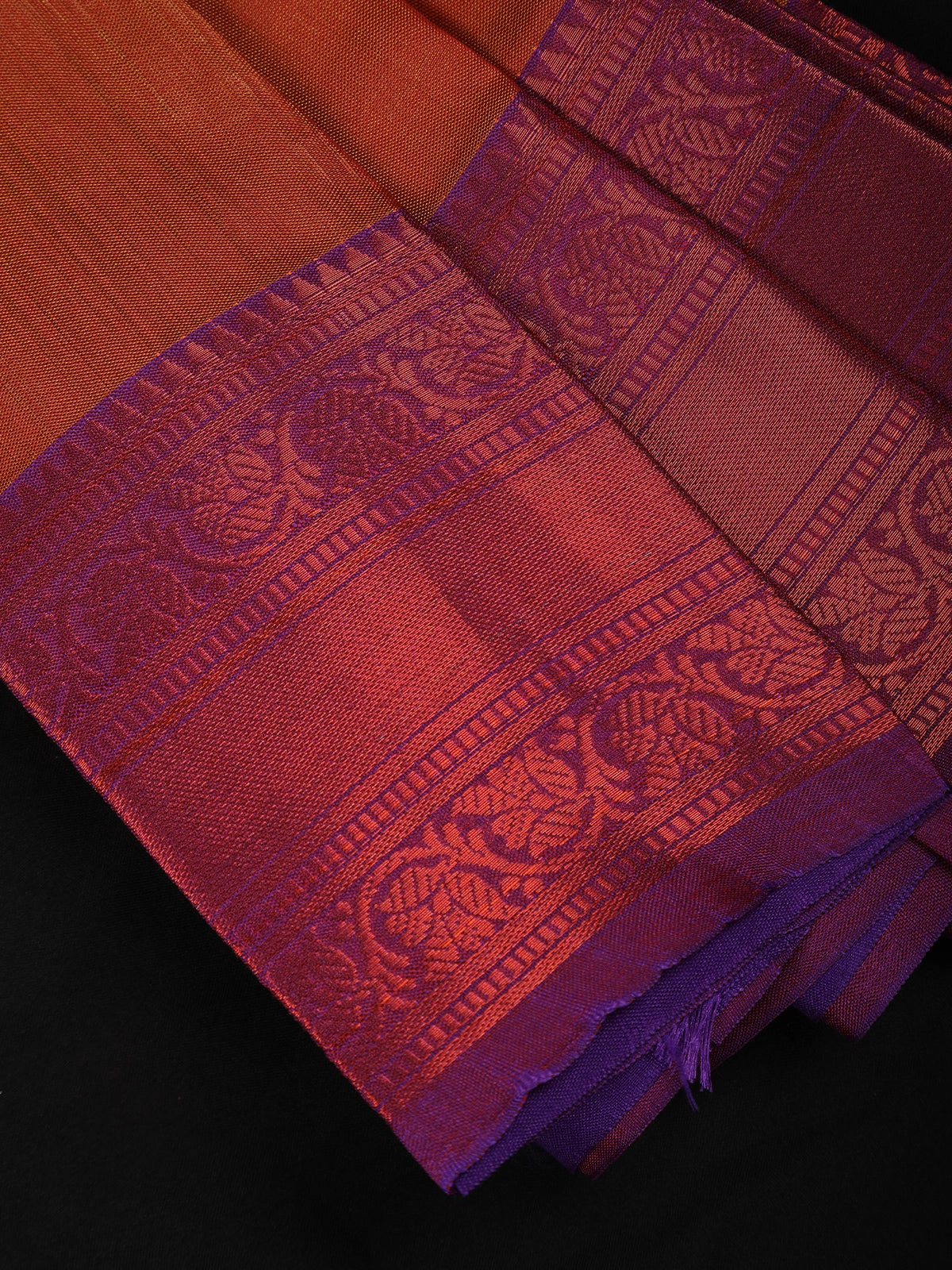 Rust Orange Butta Woven Soft Silk Saree with Purple Contrast Border