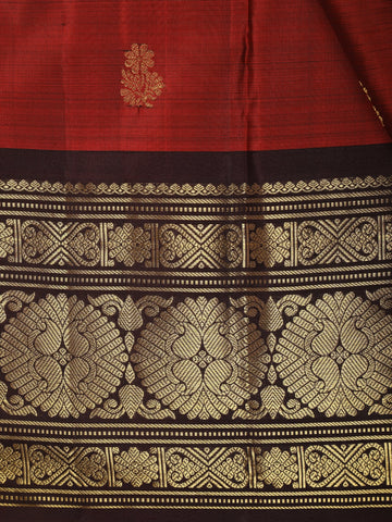 Rust Orange Butta Zari Woven Design Pure Kanchipuram Silk Saree with Contrast Zari Border