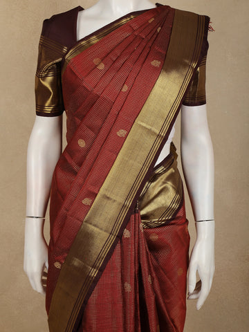 Rust Orange Butta Zari Woven Design Pure Kanchipuram Silk Saree with Contrast Zari Border