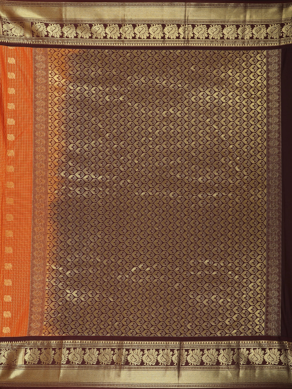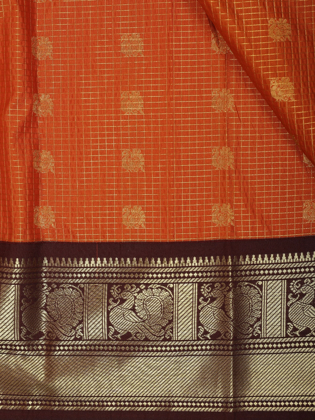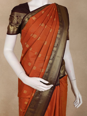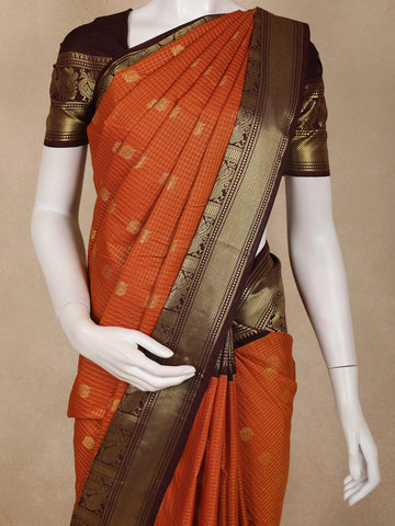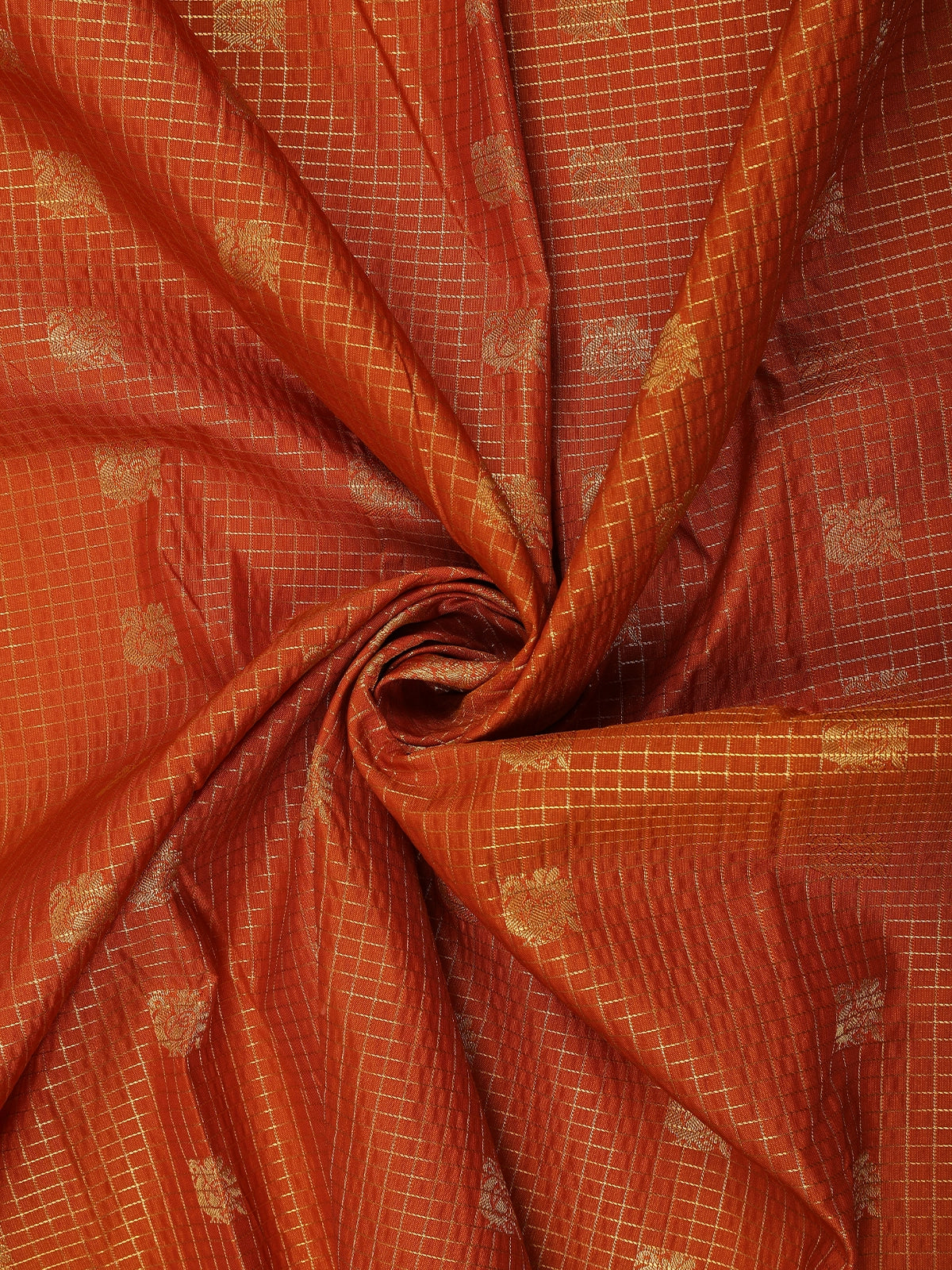 Rust Orange Floral Butta Design Art Silk Fancy Wear Saree with Contrast Border