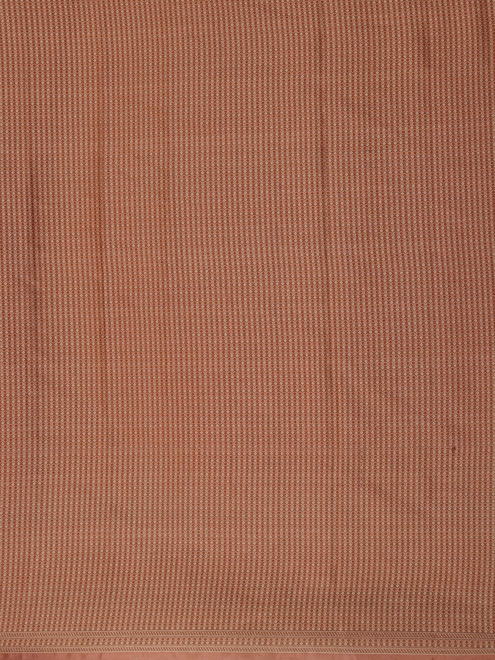 The zari border adds a touch of regal finesse, while the matching orange pallu completes the drape with effortless grace. Paired with a contrast brown blouse, this saree strikes the ideal balance between traditional artistry and contemporary appeal.