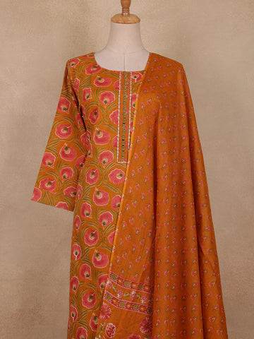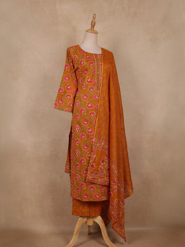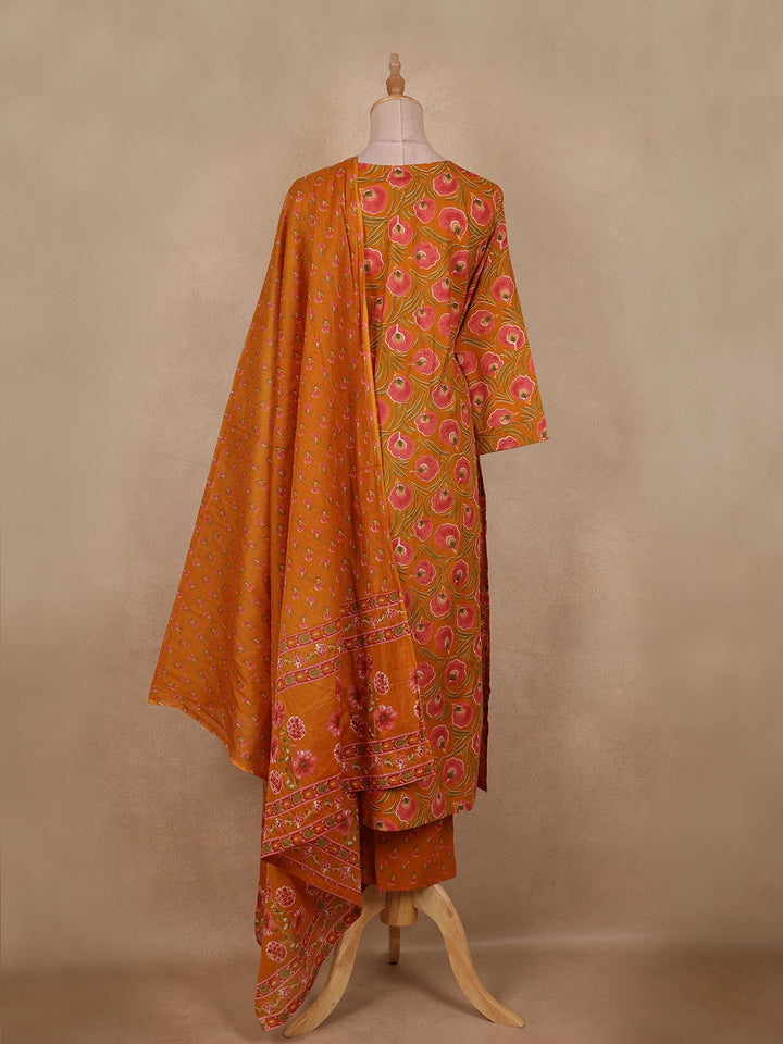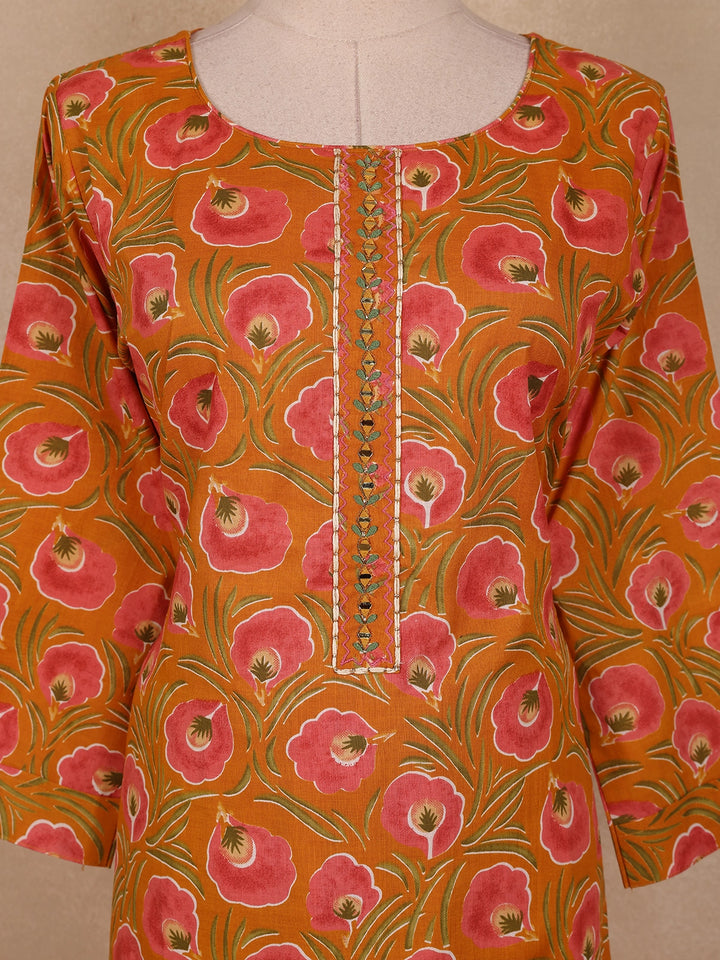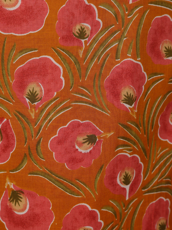 Rust Orange Floral Printed Design Cotton Straight Cut Salwar Suit