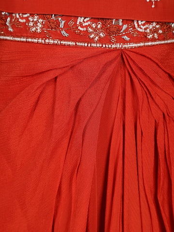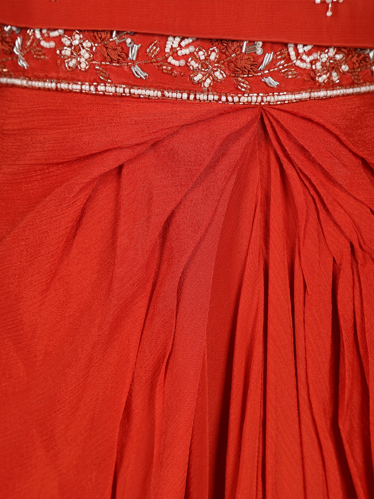 Rust Orange Floral Sequins Embroidered Chiffon Skirt Top