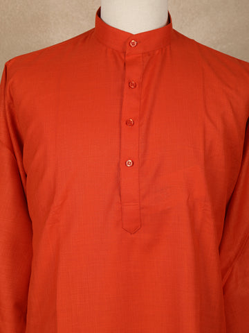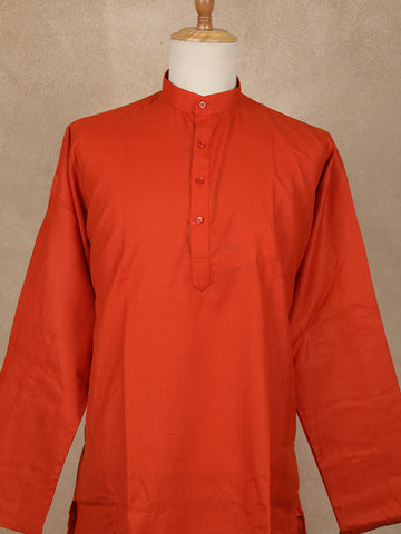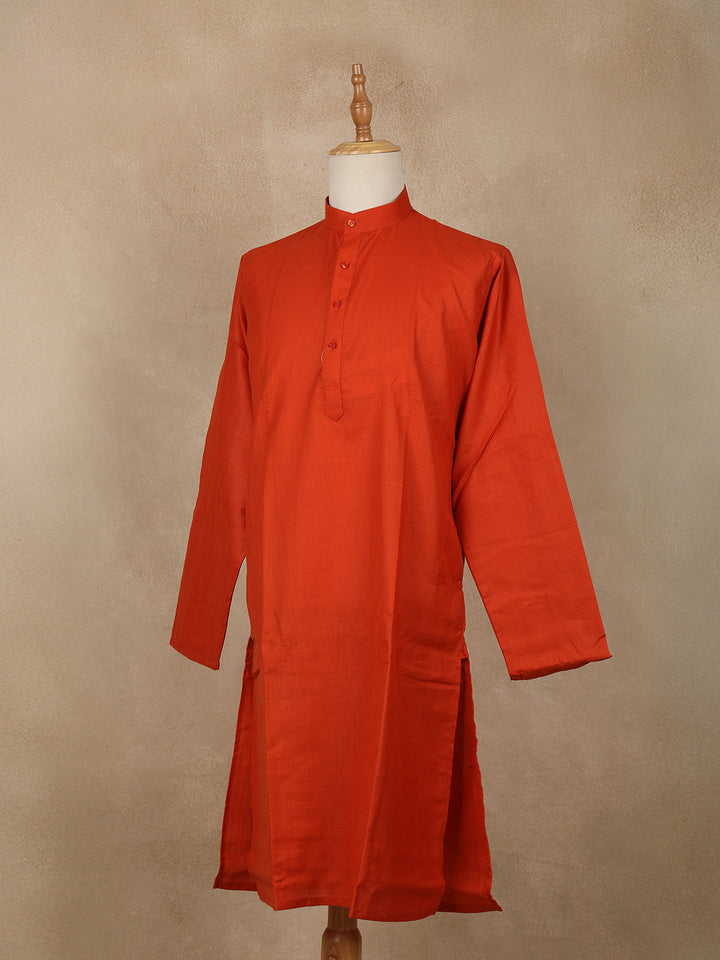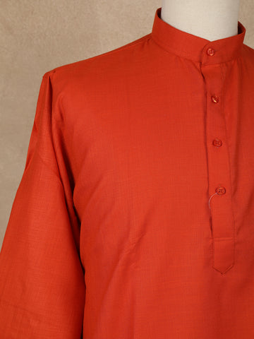 Rust Orange Solid Design Cotton Men’s Kurta
