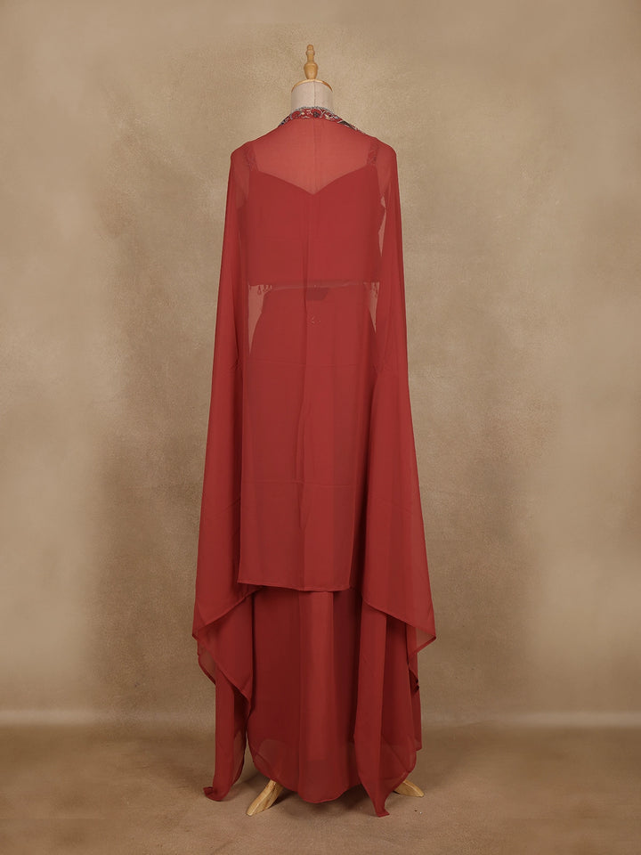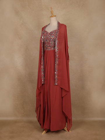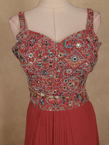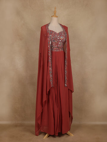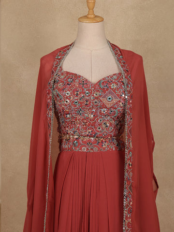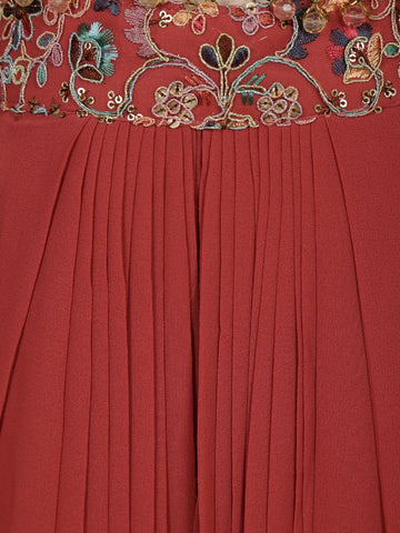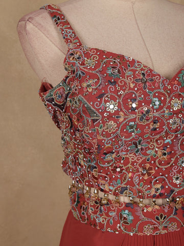 Rust Pink Floral Embroidered Georgette Skirt Top